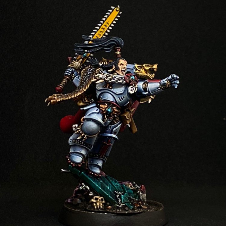 His stat-line remains unchanged but his Axe Morkai changes in a couple of ways: the one-handed attack is now a sweep attack doubling your attacks but reducing the damage to 1. The two-handed attack now does not suffer -1 to hit. He gains the Chapter Master and Rites of Battle (Aura) abilities which allows him to give 1 unit full rerolls to hit and allows Core units to reroll hit rolls of 1 respectively.