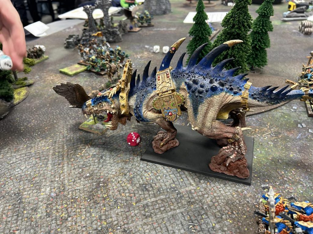 Troglodon's are probably fine? Credit: RockfishThe Troglodon is a bit of a jack of all trades master of none. They're as big as a Carnosaur but are only Toughness 5 with a 5+ Armour Save and 5 wounds, making them very susceptible to being un-alived for their 200 points. They come with a Level 1 wizard that can take either the Lore of Battle or Illusion but does not count as a character, and they have a Str 3 AP -1 Breath weapon that always wounds on at least a 5+ regardless of the opposing unit's toughness. What could make you consider running one (or 2 if you are insane) of these guys, is that a) They are Arcane Vassals with the Large Target rule, and b) once per game, the Troglodon can let out a Primeval Roar during your command phase. On a successful Leadership test (using the Oracle's leadership of 8), all Cold-Blood units within 7 inches of this model gain the Furious Charge special rule if they do not already have it. If you can get this off at the right time it can lead to some really devastating turns with units like Cold Ones now putting out 6 attacks each, or all the Skinks on a Stegadon deciding to go feral for a hot minute. It's definitely a bit of a build around unit that I would want to spend some more time with if only they weren't so mushy in the middle.