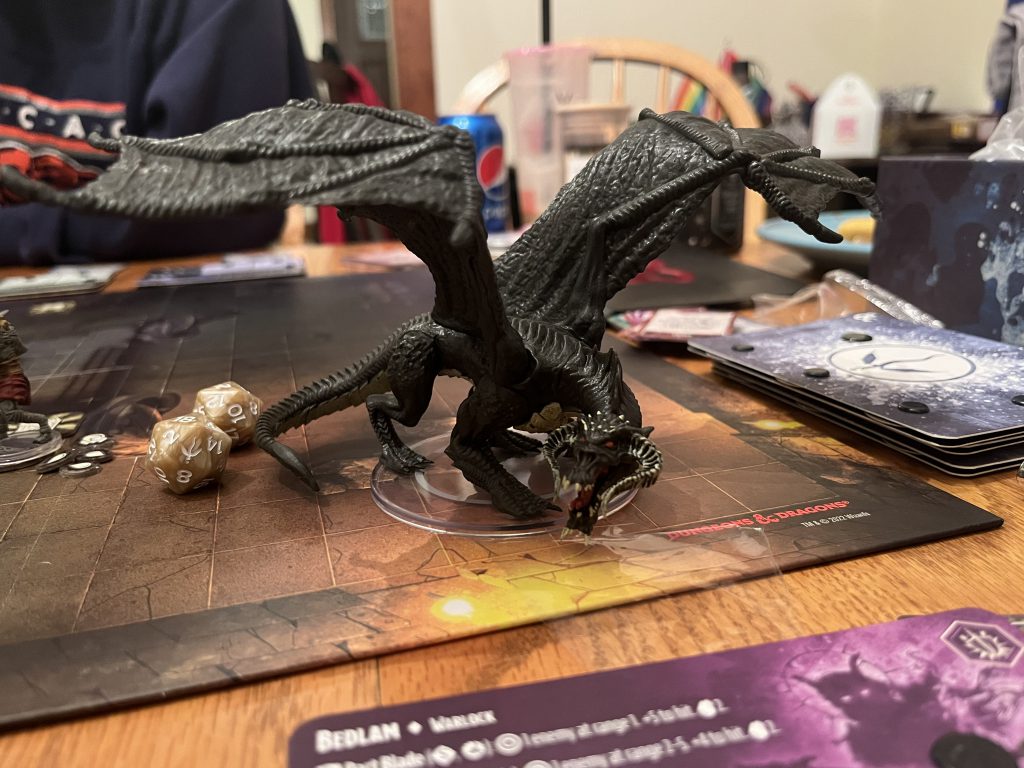 Final thoughts: this game is really, really fun in a way that surprised me. I’m absolutely looking forward to getting another chance to play. The minis, board and other game pieces are all really nice quality and the rules are explained well- though again we are D&D familiar. It just might be too expensive for an average player to get into.