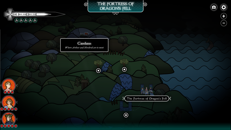 And yes, runs -- this is a run-based game, though it’s a far cry from your standard rogue-like. Your first run will be rather short, and will almost certainly involve Arthur dying, but as you unlock more characters (meaning more starting points) and get better at the game, you can make runs longer or shorter, either showing up to Camlann later with higher quality allies or, presumably, earlier before Arthur goes and makes a fool of himself with Mordred’s elite knights. The game’s storytelling and writing is quite a strong point, down to the stories that are told around the campfire by your characters each night (in a thoughtful twist, these stories are actually credited to the writers who came up with them in-line, rather than having those backloaded into the full game credits).