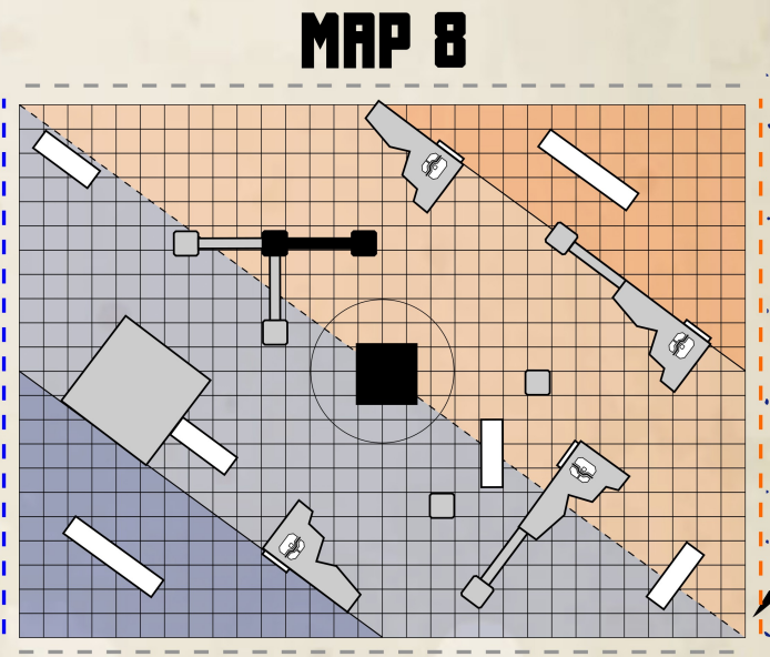 We line up for the 4-4 match, and Artem gives me the top right side. I’ve got to say I’ve generally not minded the terrain layouts for the maps, but the combination of map 7 and objective layout 8 really suuuucked. It meant that my side just could not reach the two middle objectives without getting lit up and really forced the game to remain quite close. Even with Artem losing 4 operatives on tp1.