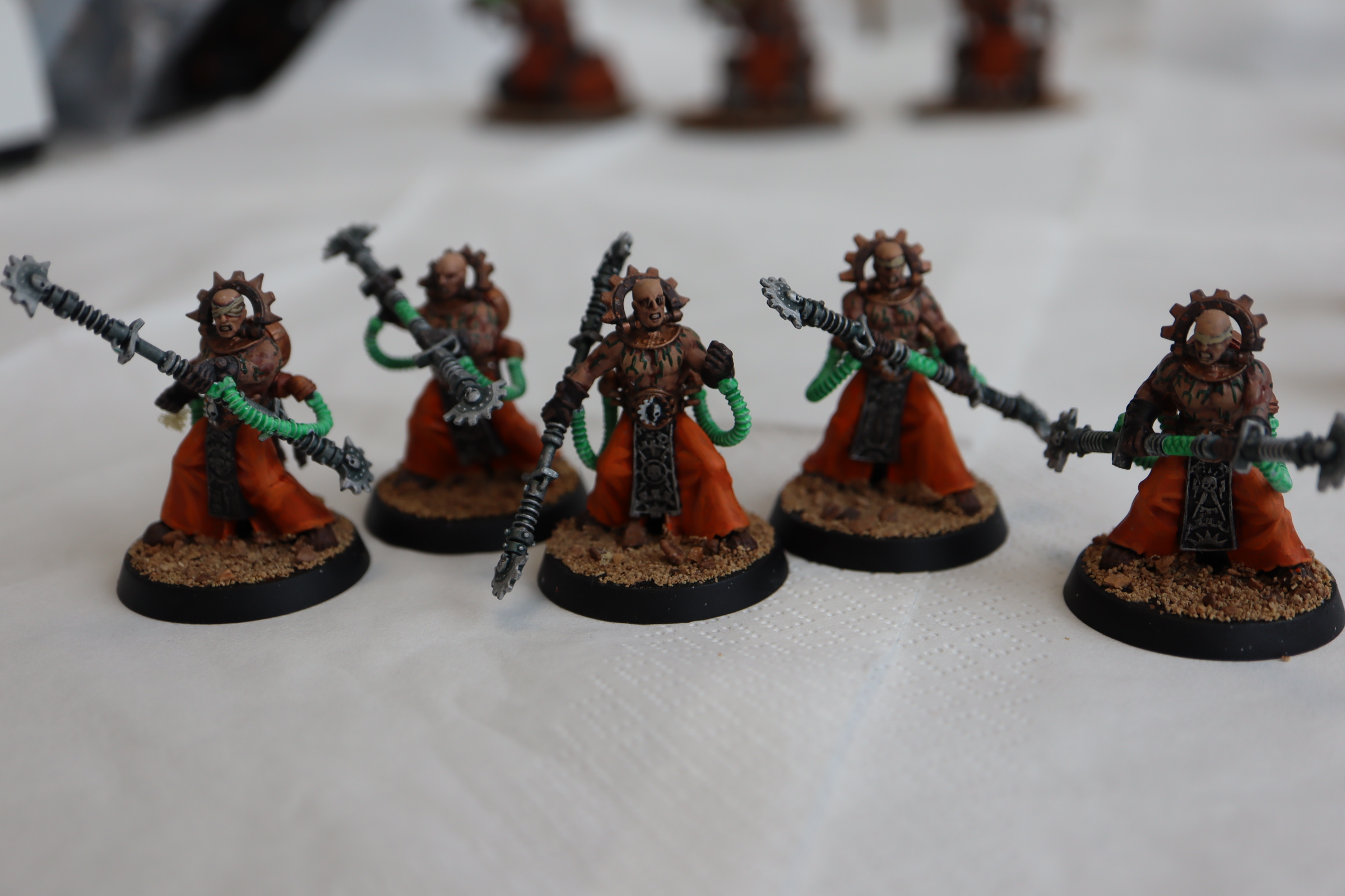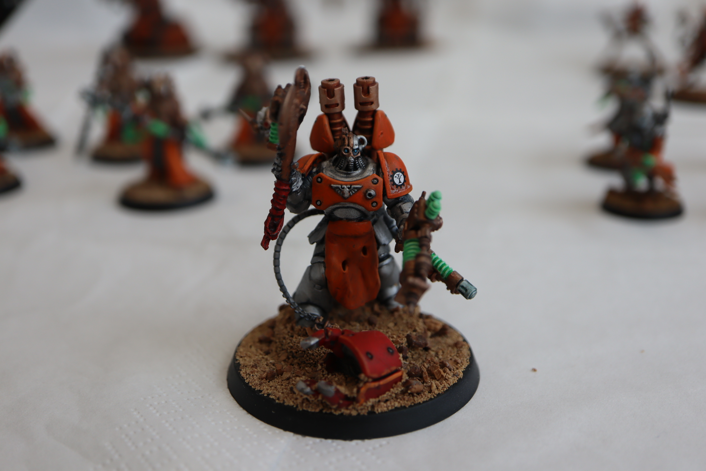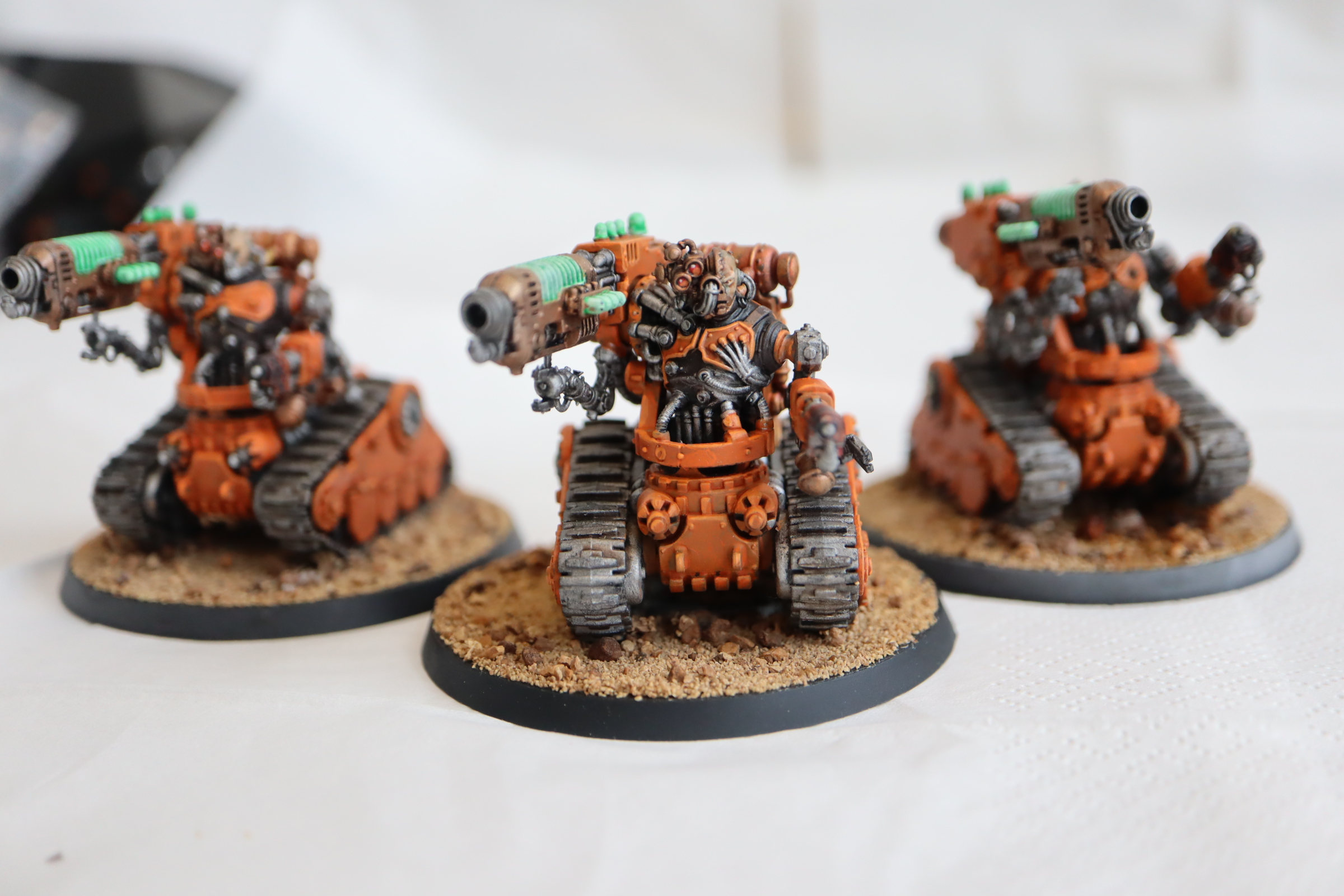Summer: Another in-progress shot. I'm thankful for a Mechanicus entry here, and a deviation from Mars-standard red. The realest show of skill here is the hazard striping on the lead Kataphron's base, which I adore. I'm gonna love the rest of the force, especially the support elements for these heavy hitters.