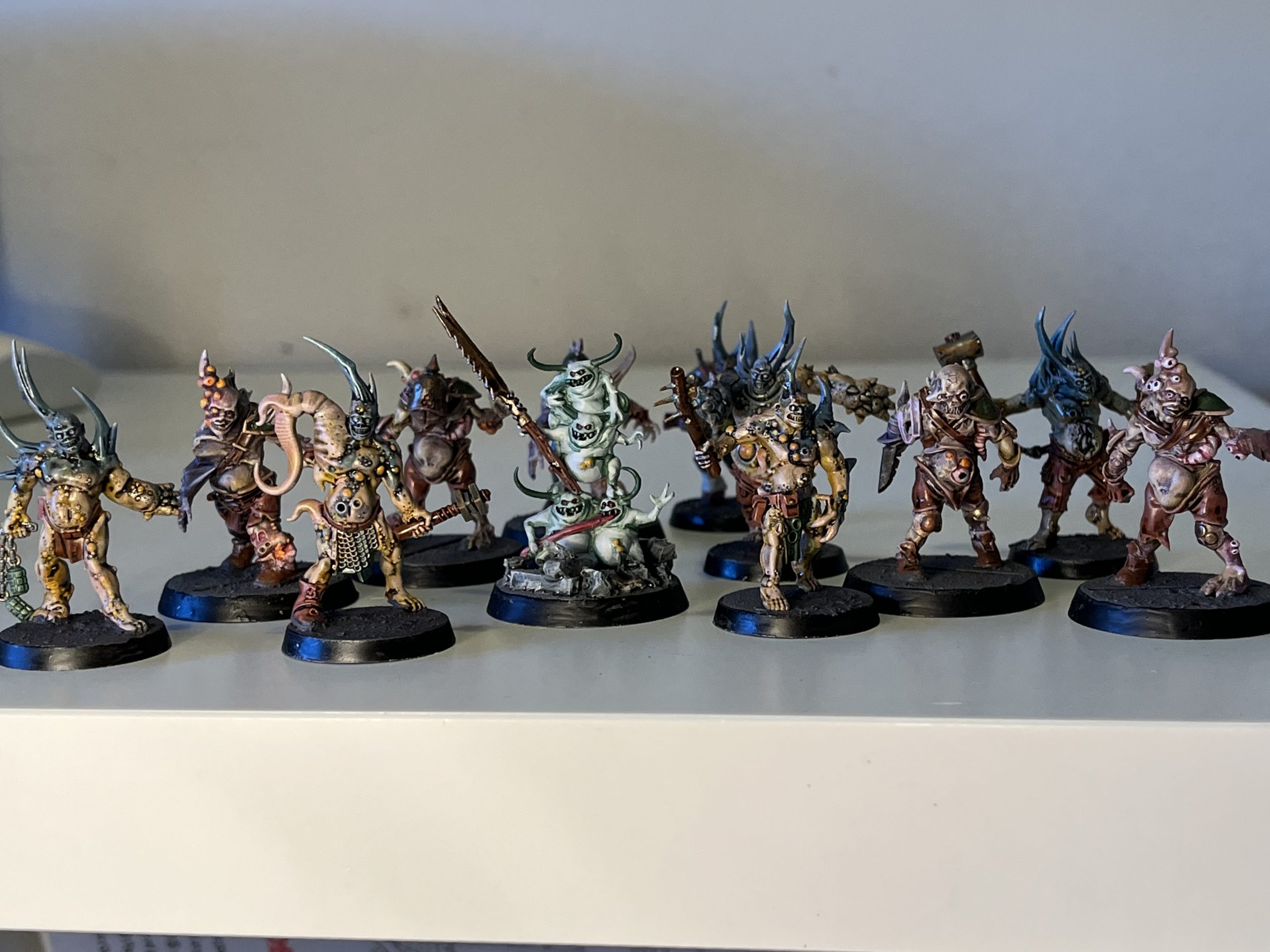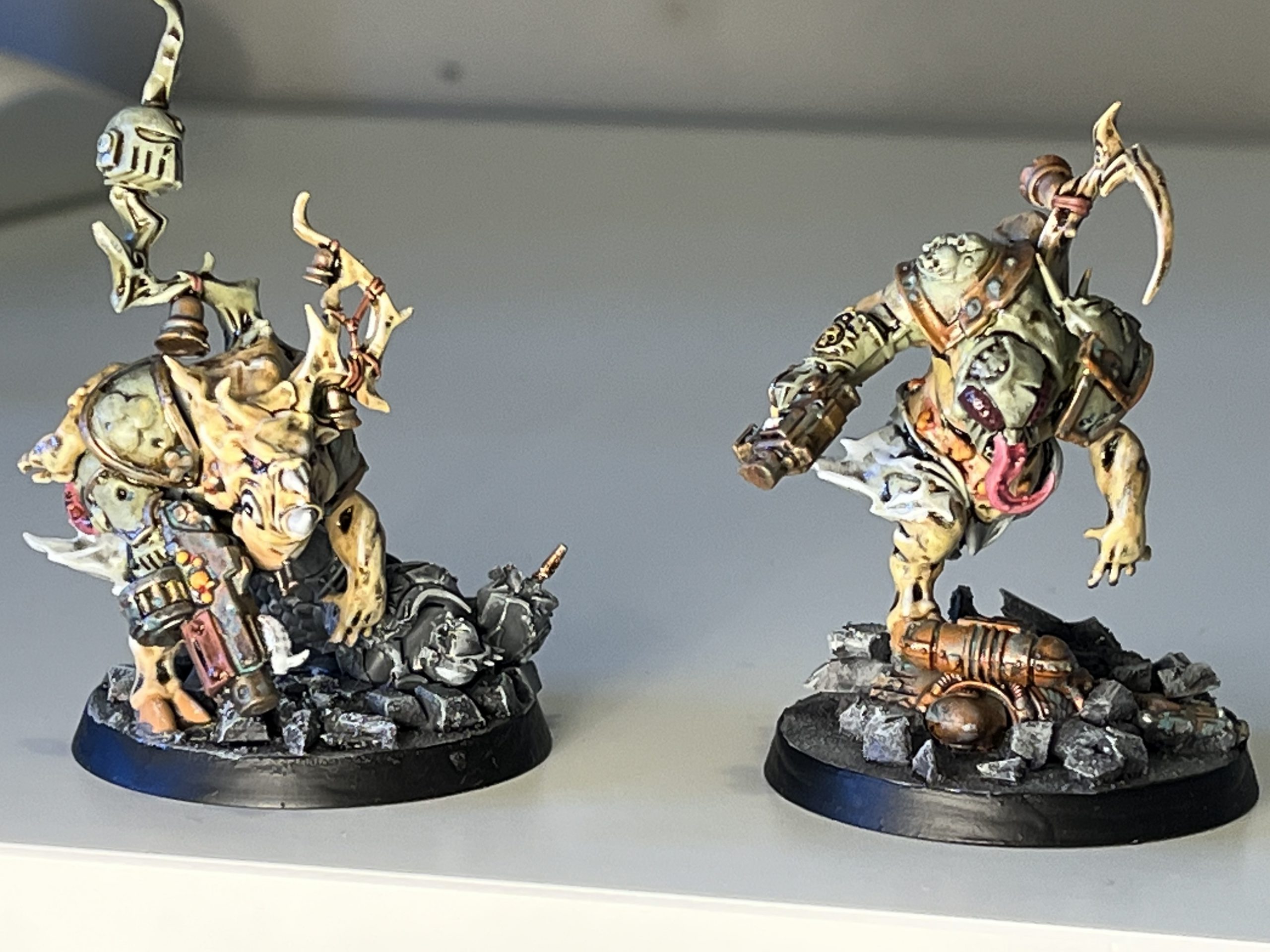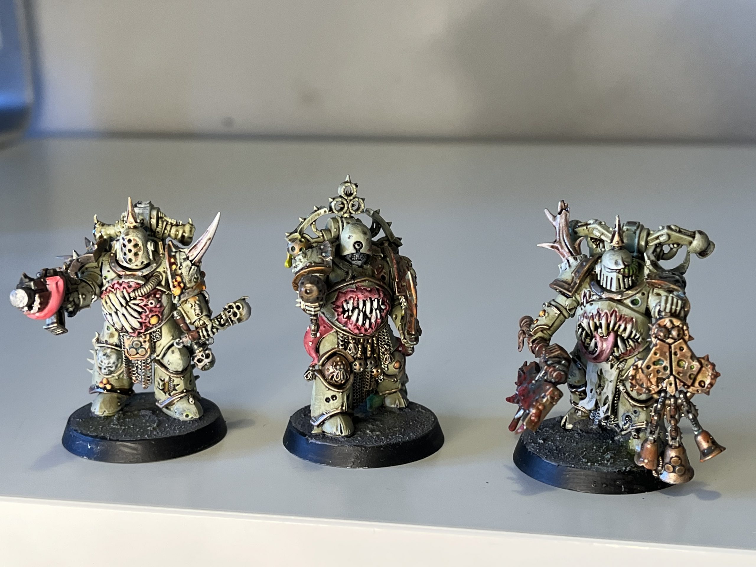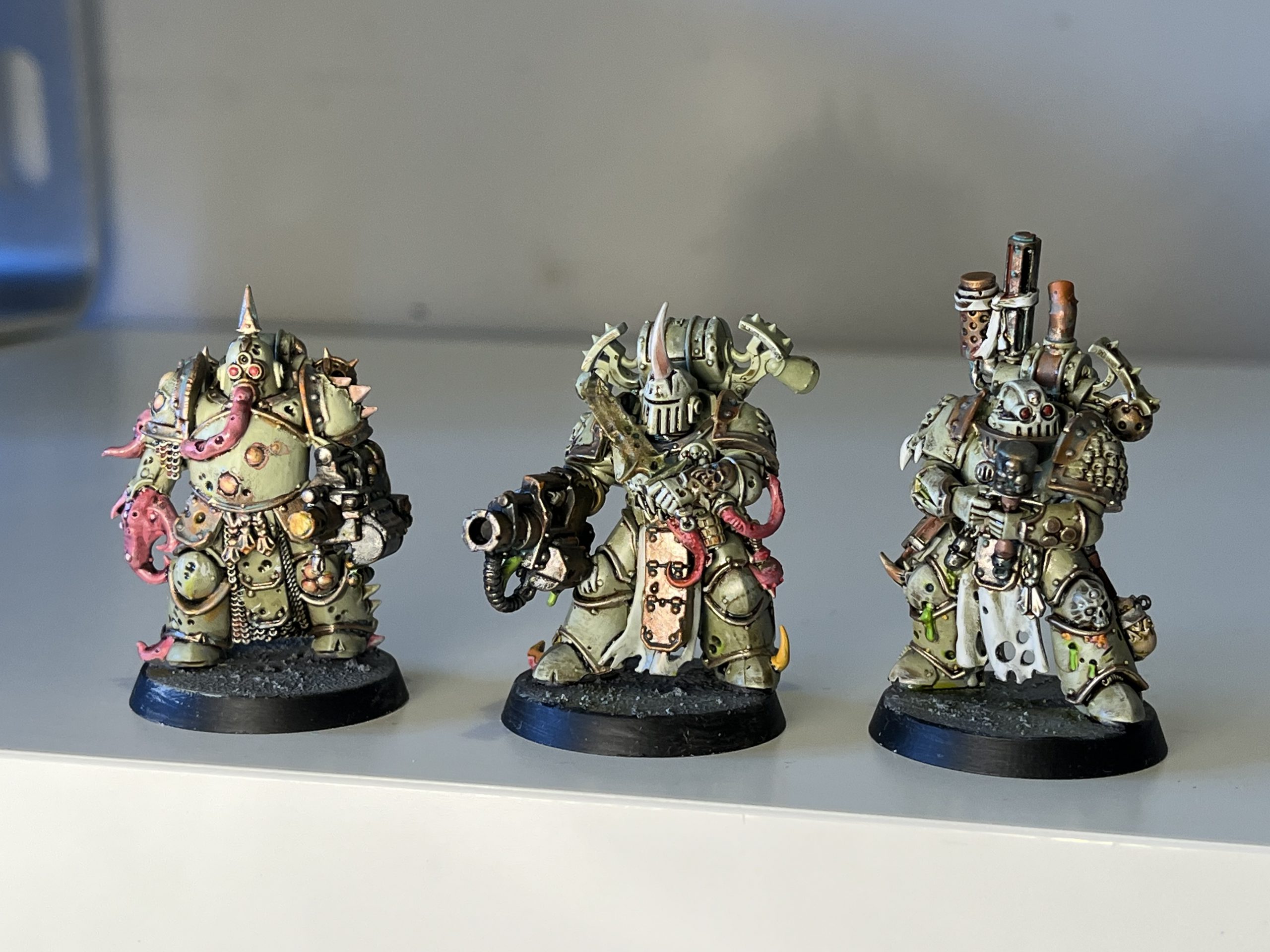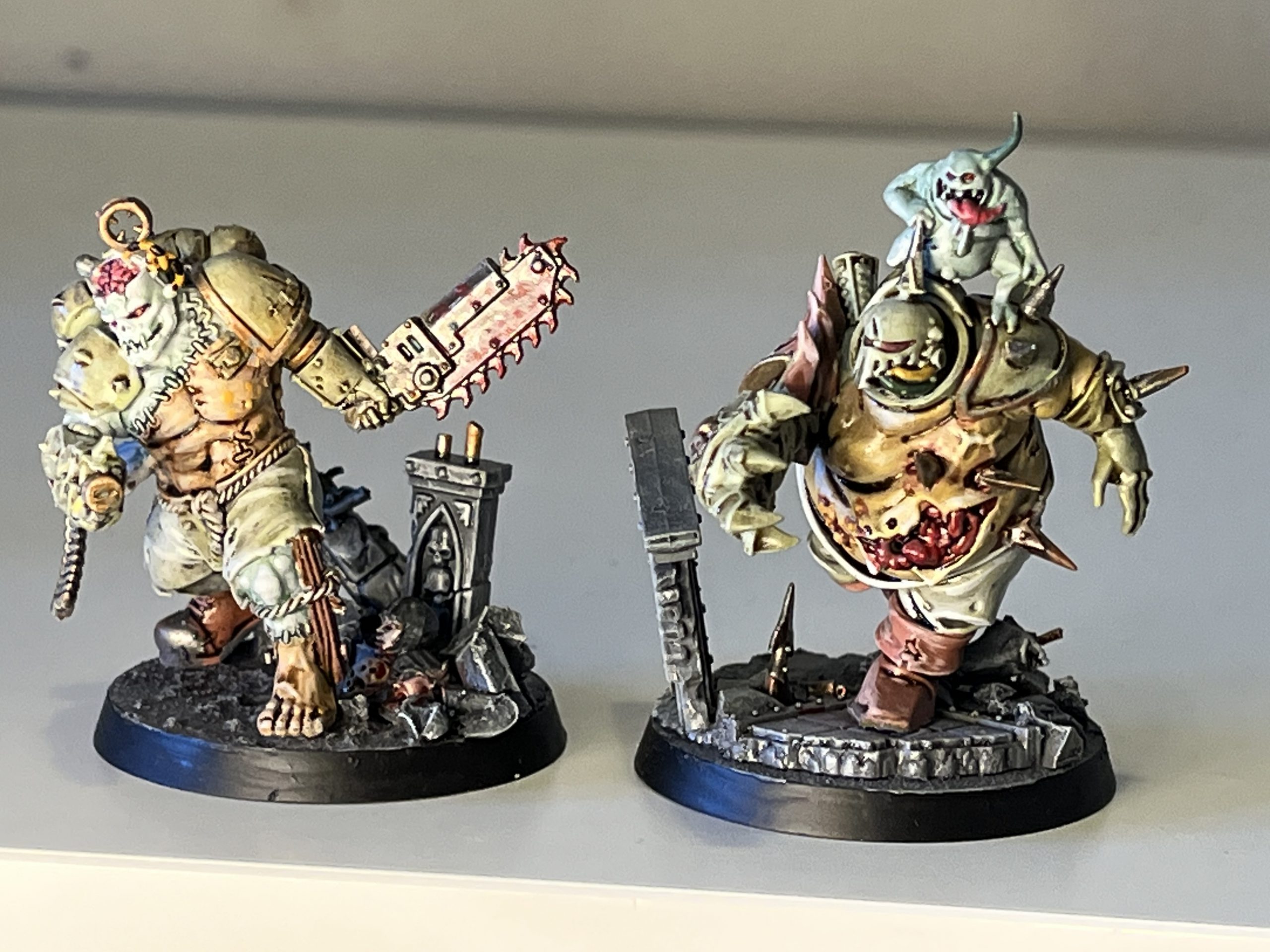 Anyway. Marv has really drawn out the best qualities of the diverse Death Guard character roster with a mix of bold colkours, weeathering and oily washes. These models are textural in a way that plainly painted ones aren't, which suits the visceral style of Death Guard. I'm incredibly fond of the wacky possessed, and the mandatory inclusion of skittering nurglings. They're a great force and I'd love to dispatch a suspiciously hardy four-person team of convicts to wipe them all out.