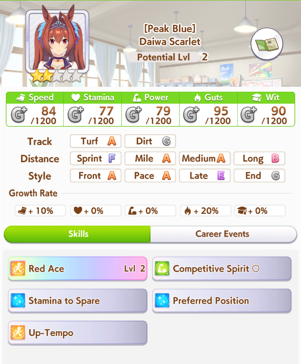 Because of Firm Conditions, this Winning Ticket actually has over 600 Power, and can also serve as a foil to others running Lone Wolf.As mentioned above, Medium races often want as close to max Speed as you can get (so somewhere around 1000 to 1200), good amounts of Power (700~ or s), and high Stamina (800 or higher, preferably higher especially if you don’t have a lot of healing skills). The higher stamina you can get, the better, because this will help you stave off Debuff builds from other opponents by ensuring you have a good amount of HP in the bank and healing skills to help counteract the effects of the Debuffs. After these milestones, Wit is the last thing to consider; you often want to get at least 300, which isn’t that hard in a successful career run, and even 400 is an ideal target if you can manage it or get lucky with summer training. Since you have to train 3 total runners, it is not a bad idea to rotate your daily trainings until you are happy with one of them, and then work on another; there is quite a bit of time before the race, so even doing 3 campaigns a day for a few days should get you to a good state.