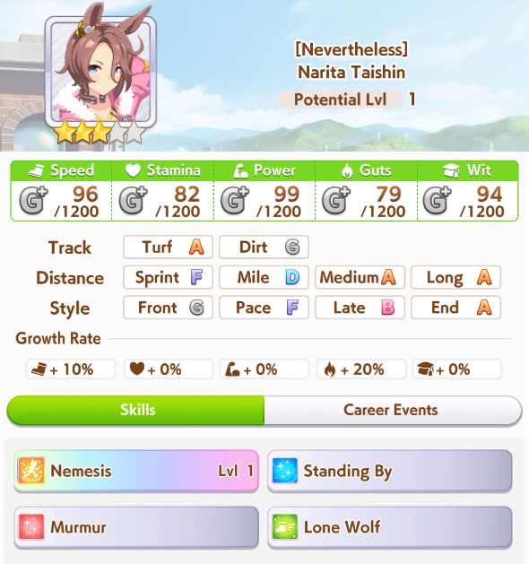 Although she just released, Narita Taishin is a great choice due to her skill Nemesis and Lone Wolf, although her growth rate favoring Guts can make it a little harder to train her Stamina and Power without consideration.If I had to make a few suggested trainees, I’d likely break them down this way, with one caveat, which is that I would always take Gold Ship AND two of these other options in almost all cases. Now then, the lists: