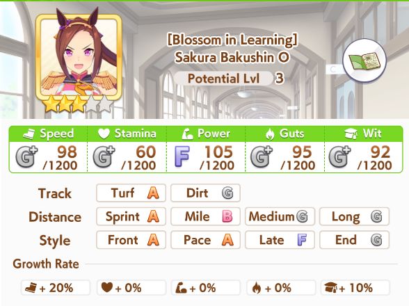 For trainees that gain 20% in a desirable stat, you can likely get away with running less Support Cards in that stat (for example, 20% Speed Growth means you can probably reduce your Speed cards to the best available ones you have and the best skills they offer). This can also be a boon to allowing your deck to be more flexible, since a 20% Power Growth trainee may be able to use less Power cards, thus opening a slot for a Wit or Friend card (like Tazuna).