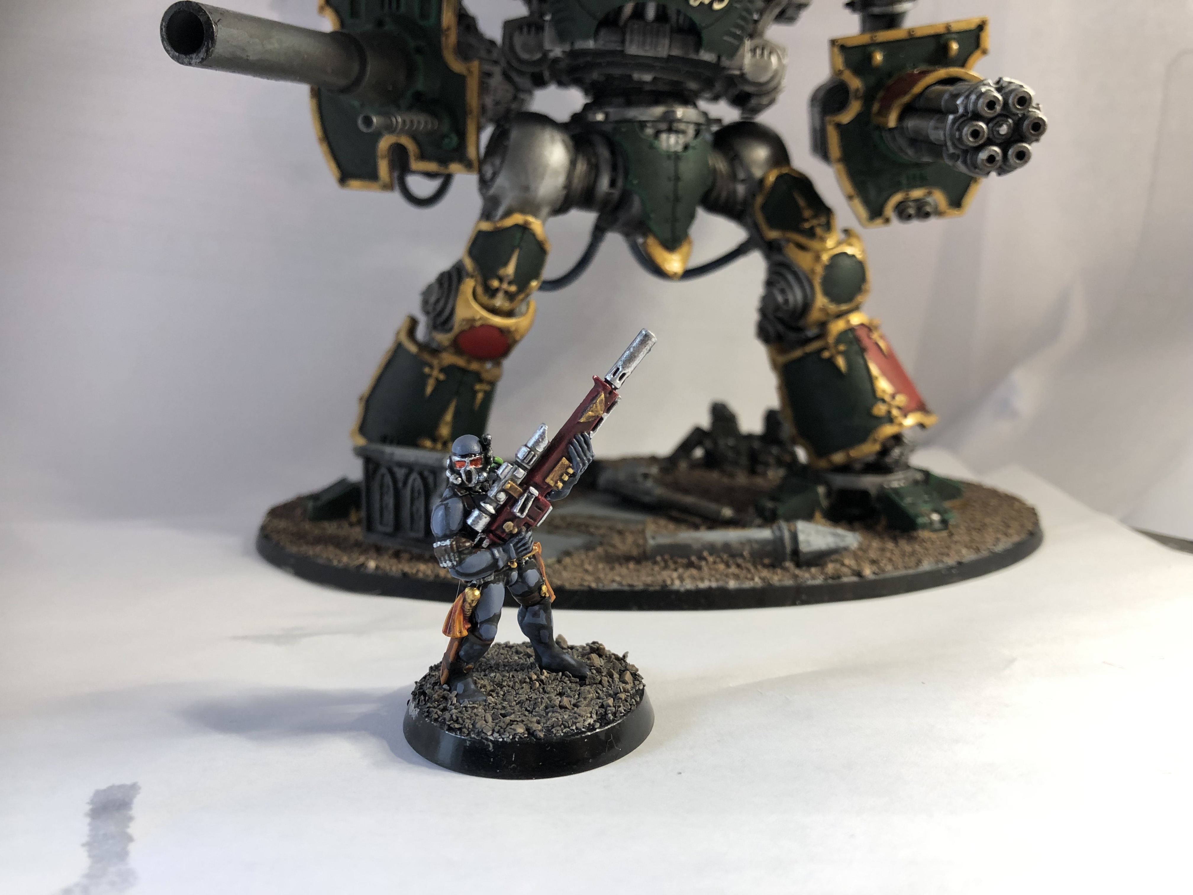 Baroness Altria Pend-Tokage, Imperial Knight. Credit: Tyler "Coda" MooreOur next Knight on the list is the Warden (gatling/melee), who can use Belligerent Machine Spirit to auto-hit with an Avenger Gatling cannon within 8". There's not a massive amount to say here - this is good for four extra hits on average, and roughly brings a vanilla AGC in line with Endless Fury when you can get it off. According to my notes, Endless Fury is "real good", so you should probably use this when you can. Especially because Wardens are already good, this can have an A.