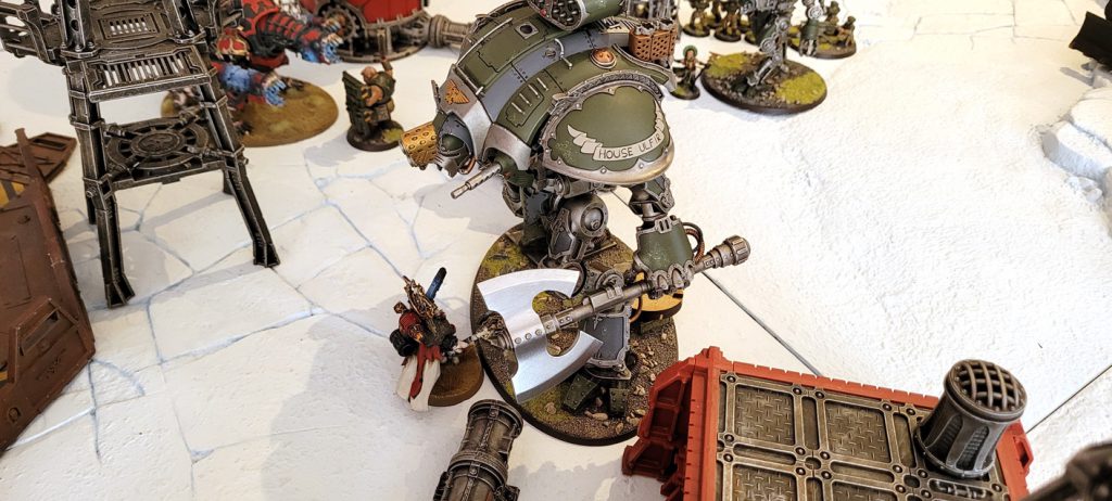 As the initial weekend went on, the Imperial armies found themselves on a winning streak. An unbroken winning streak. We started to joke that the Imperium might actually win if things carried on this way. Now admittedly, there were some bold choices. Dan - Oxford’s most sporting wargamer - expressed interest in taking on Tom’s Knight with his Red Corsairs. He gave it a good go, but ultimately couldn’t bring the old girl down.