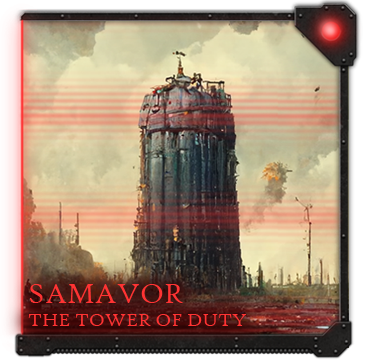 [mark: 0.03.13; personal log extract, Cobalt Scions Chapter Master Tiberius Drusus] When we arrived, we found the area around Samavor choked with the broken bodies of Lachesian guardsmen and the smoking wrecks of their tanks. Their fight was not long over; dust and smoke made visibility poor, but even from a distance we could see the tower’s outer gate had been smashed. The sound of drilling suggested that the main gate had not yet been breached, and so we moved at speed.