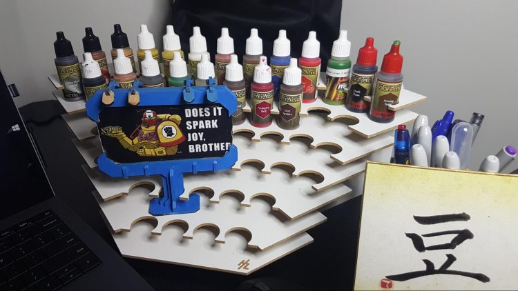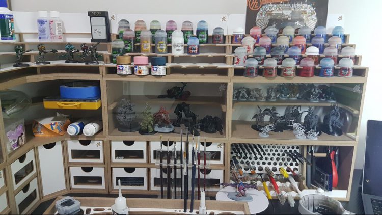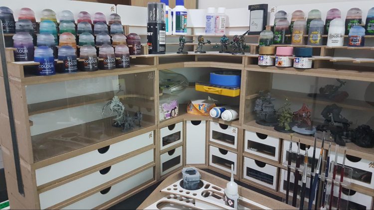 Hobbyzone Paint Racks - Credit BeanithThe display cases are great for storing projects on the go and keep things dust free for the most part. I’m almost out of room for the GW paints on the top but I have plenty of room to grow in the separate dropper bottle rack I also picked up at the same time. Overall, an awesome purchase that does exactly what I needed.
