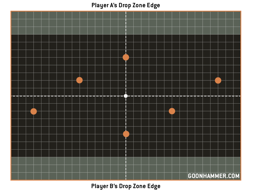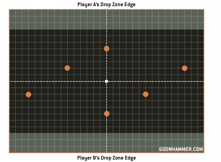 Nothing too fancy here - it was our first game of the new Kill Team so we just grabbed the first Matched Play-suitable mission Loot and Salvage. This puts six Objective Markers on the board, which can be looted for an Action Point by a player that controls them. Each can be looted once per turn and a maximum of three times per game, and you can score a maximum of 4VP from them each turn.The Battlefield