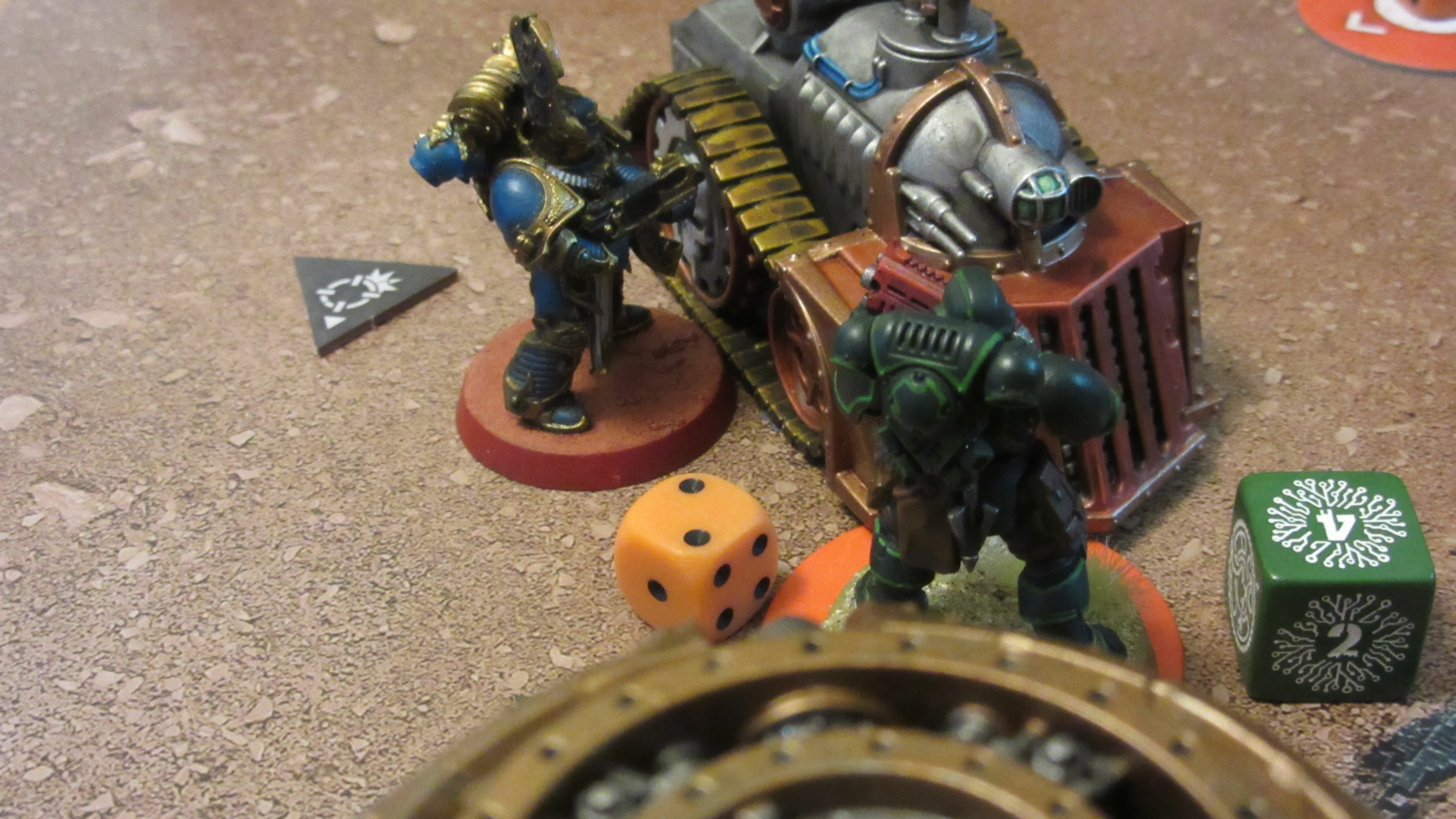 That did, however, have the mild side effect of leaving my Sergeant exposed, and the soulreaper cannon Rubric marched forward to try and capitalise, unleashing a terrible burst of fire that left my operative badly bruised.