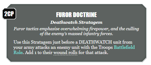 The second is the Furor Doctrine, which does the same but against enemy units with the Troops battlefield role. Another handy trick, especially given the large number of anti-infantry guns on the Executioner.
