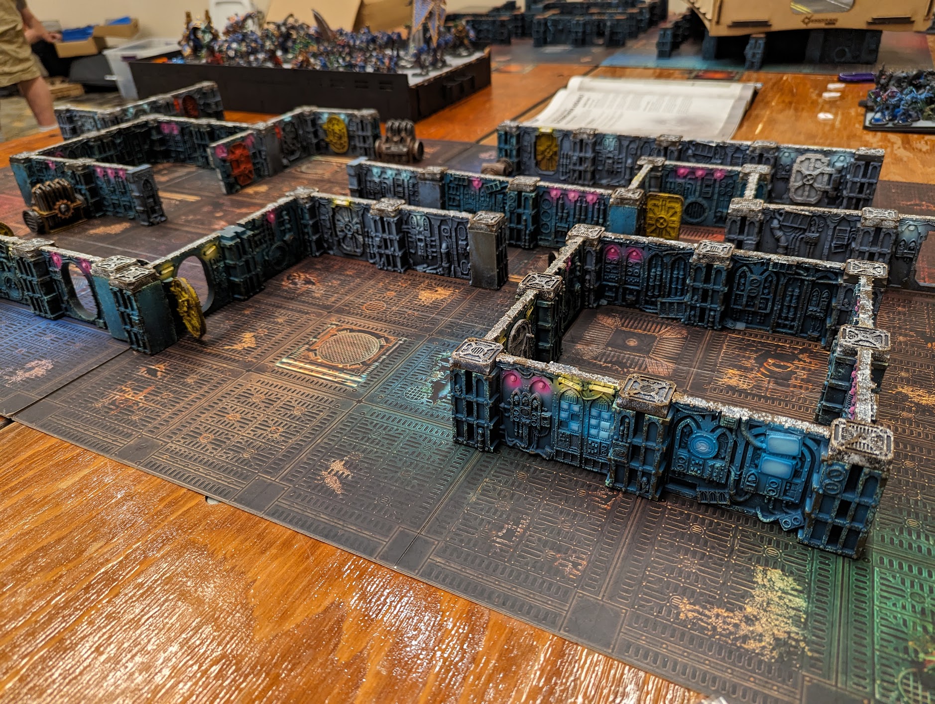 Basecoats using "Ocean Depths" and "Hydra Turqouise" from Army Painter's Warpaints Air rangeI found I never needed all three tones as the color shift was too subtle. Using the "base" color and the "highlight" color was enough (see Kill Team Gallowdark terrain above as an example).