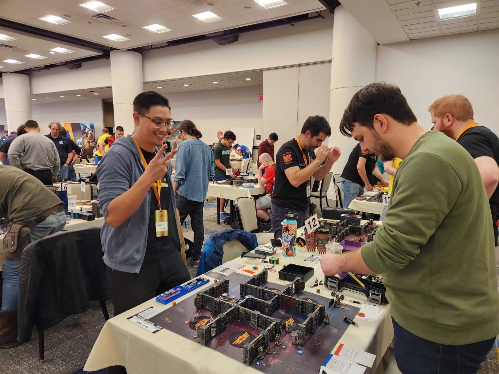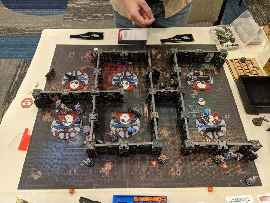 Coming into round 5 with a 1-3 record was certainly not my plan for the world champs, though all three games felt competitive. So my spirits were still quite high. My last round was against Ryan Z, a texas native who won the grueling 5-round Alamo GT. Unfortunately for Ryan, I knew both sides of this match up back to front, having played the Starstriders earlier in the year. His set up was far too defensive, and left no room for his operatives to push forward onto points. By the end of turning point 1 he was down 2 operatives, with 0 privateer support assets fired. He did catch me with the Canid rule, as I had entirely forgotten that the dog can ignore the first 2”s of movement penalties.Our game ended well before our allotted time ran out, and we took some of that time to record an interview. Mostly talking about how his competitive fencing mapped onto growing as a kill team player, along with engaging more in growing the Texas scene. Hopefully next year he’ll have another player attend with him!