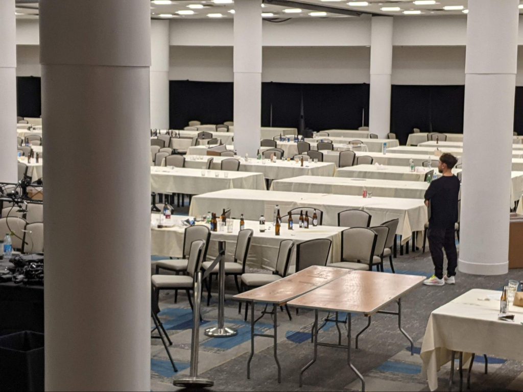 Promises fulfilled, I’m up and at 'em at 7am, on the floor by 7:30 with me and Adrian catching up a bit on pre-game strategies. When he heads off to play Java, Aleksa swings by to chat. We talk about his current success and the overall map designs giving Cults a little more wiggle room than expected. As people filter in, the world bracket lines up to their boards, and I wish Adrian some good luck as Martin and I prep for our games.