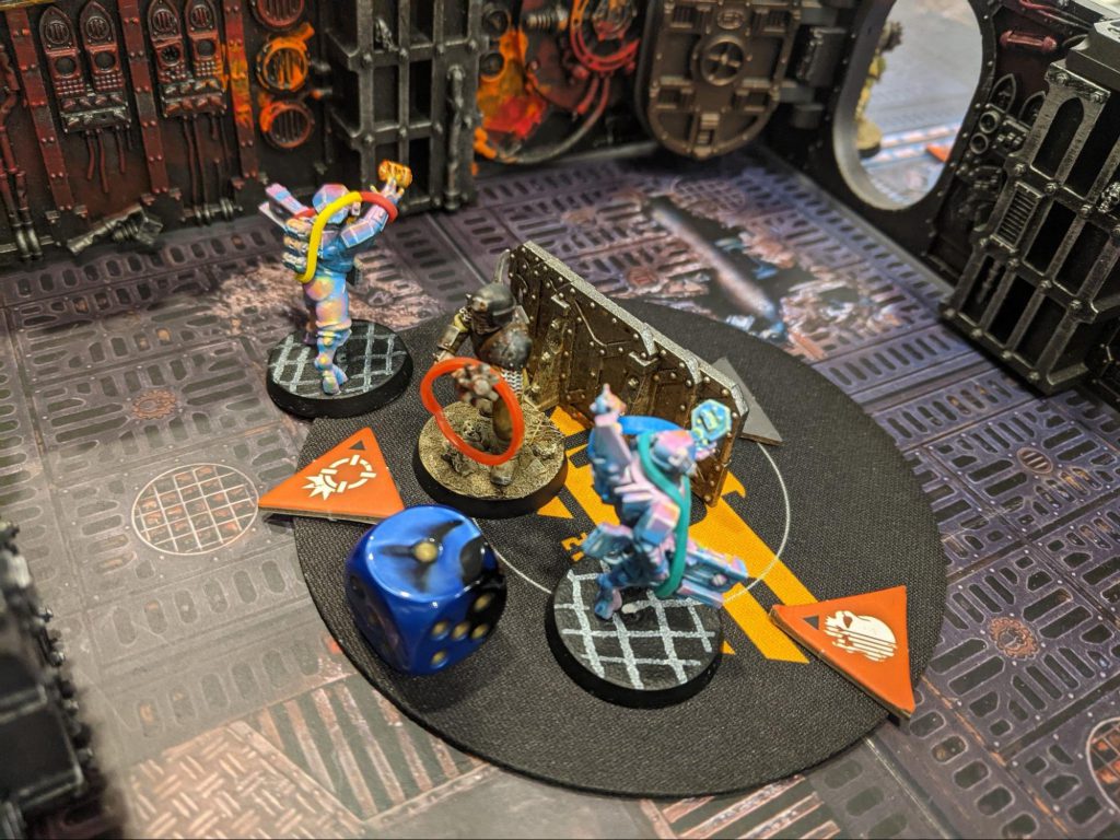Thibaud's Display Board Credit:ThibaudThe game comes down to a desperate bid on my part to get shots off. After a slow turn 1, and a middling turn two where I give Thib a laser beam I didn’t need to. It leads to me opening up turn 3 with A Worthy Cause to try and eliminate Elucia Vhane. Over the course of 3 operatives with Bonded, we roll 15 dice on 4+ BS, and land 2 hits. Thib’s saves ultimately hold throughout the rest of the game and he narrowly squeaks out a single victory point! Great game, and hoping he feels the same!