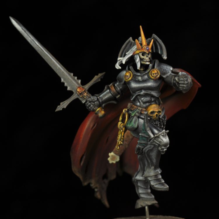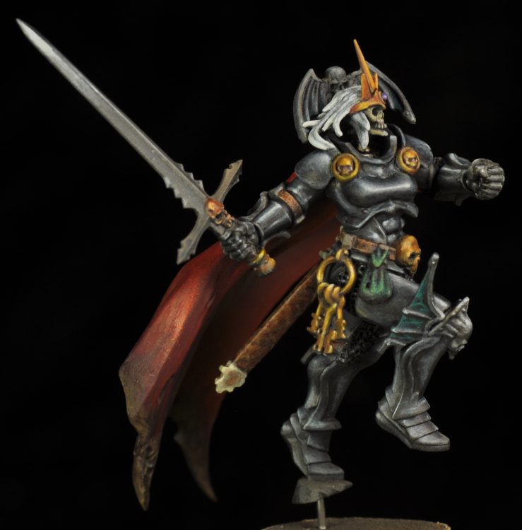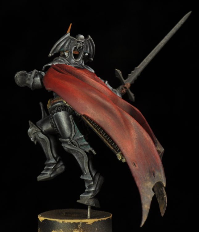 The final bit was to add dirt and dried mud to the bottom edge of the cape. This thing is long enough it would easily be dragging on the ground. For this I used Vallejo German Camo Brown Black built up to Vallejo Burnt Umber. Then a little bit of Kislev Flesh mixed in for the final highlight.