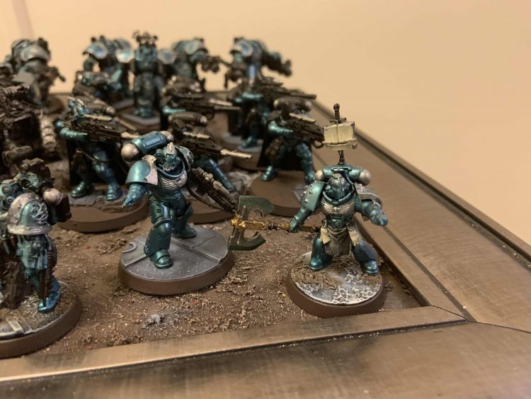 My current list is Red Scorpions as Raven Guard Successors with Long Range Marksmen and Stealthy. List is as follows: