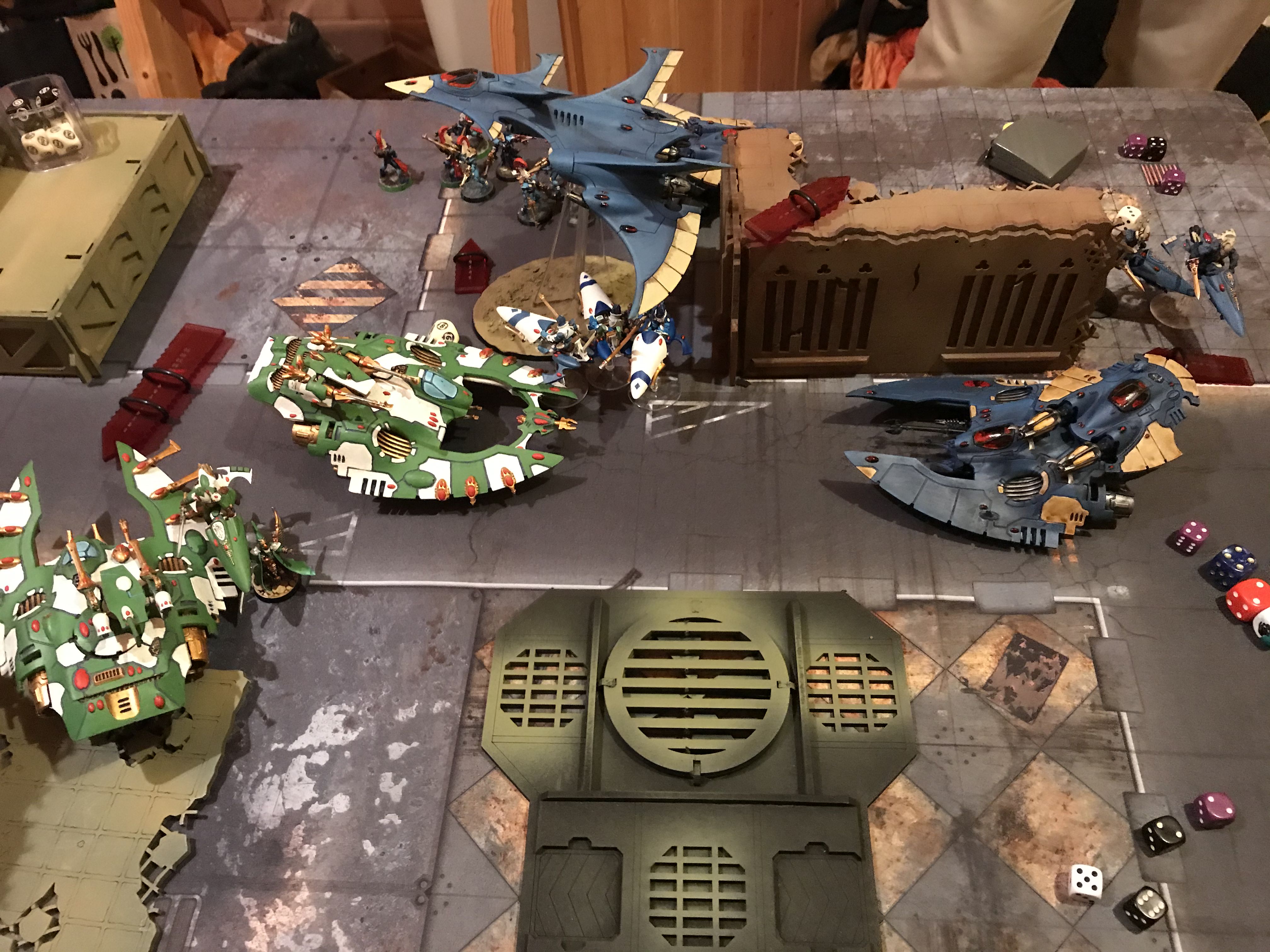 Sadly, the Skyweavers didn't quite manage to take down all the Avengers in the corner, allowing him to tie Hold for another turn. At least his shooting was relatively lacklustre - the Seer Council obviously died a death, but the other losses I suffered (mostly the Skyweavers) were manageable. Having the Skyweavers where they were did also prevent him from bringing stuff in in that corner, which could have been a problem.