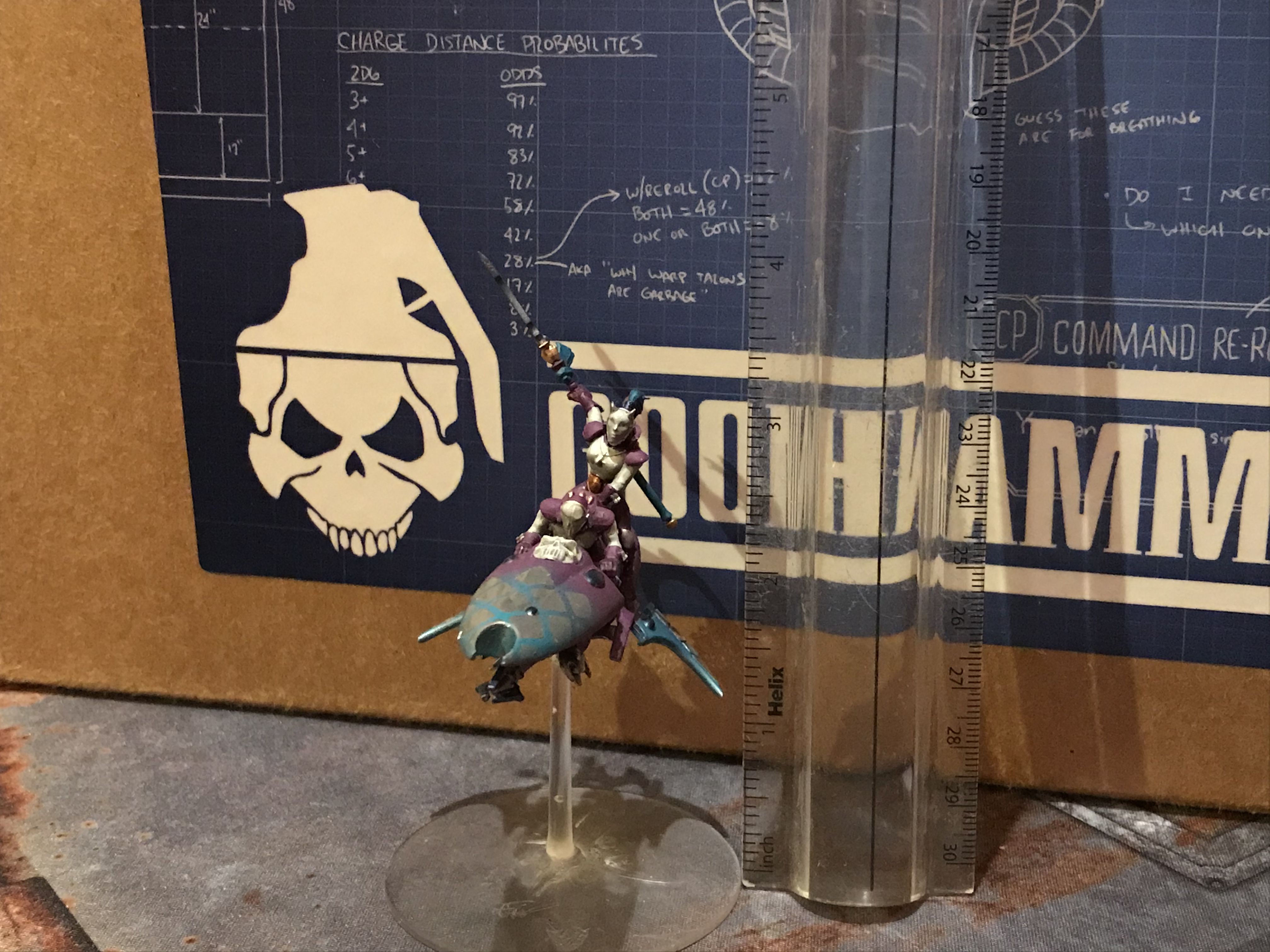 The good news is that the list clearly works - it's way more terrifying to play than the combined arms lists I'm used to but the power level is there, and I think this matchup was a challenging one to test it in. I do think Doug's correct that in this particular matchup the Vanguard Strike LVO layout wouldn't have helped me - his firepower is pretty much entirely happy operating at extreme range, and it would have taken me longer to get my Dire Avengers into position. Equally, I'd have had an easier time controlling the corner objectives, so might not have bled as many primary points early. If only the announcement had been 6 hours earlier we could have found out!