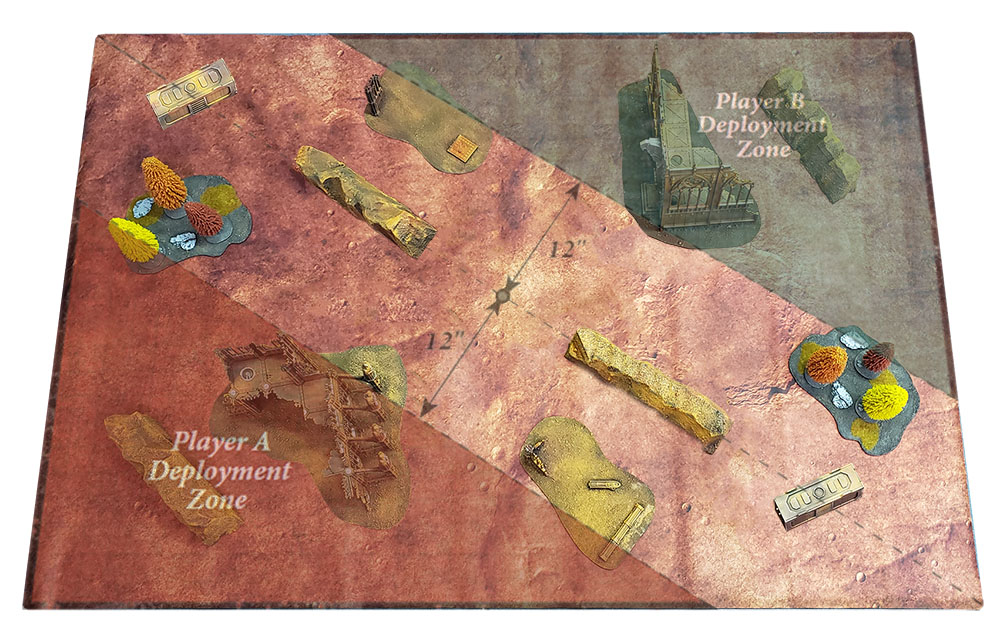 We were playing with the LGT terrain set and the LVO maps were going to end up being posted a few hours after the game. Allowing me to get one of the big L’s in my zone and creating a death zone in the middle would have been huge for me.