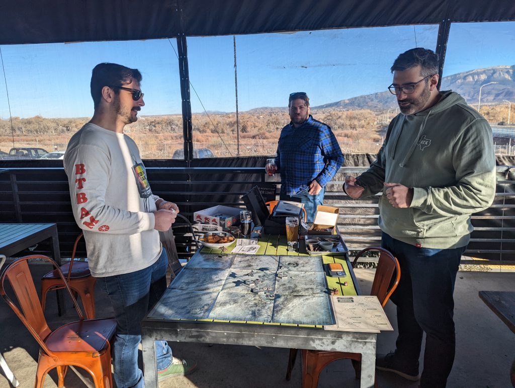Look at that mountain Credit: Rocco GestA bunch of us went to Bosque Brewing in Bernalillo, NM and had a lovely lunch with good beer and good friends. I learned how to play Aeronautica, which is a great game and more people should play it!