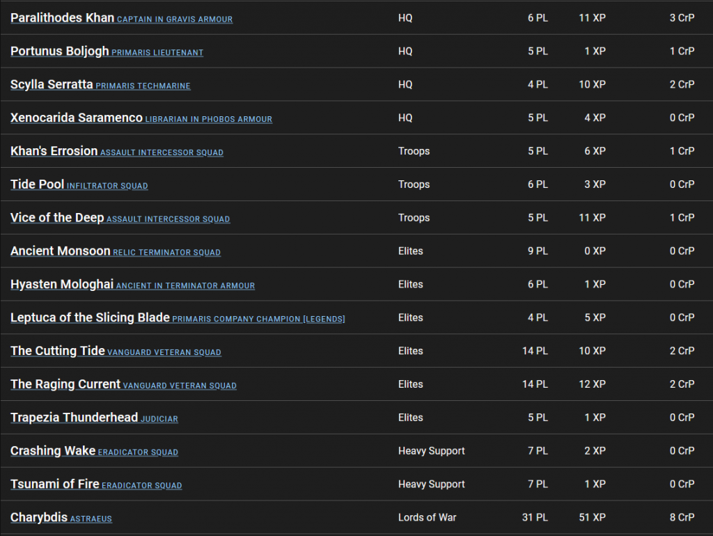 Brotherhood of the Tidal Storm, Photo Credit: LhyonAnd thanks to Administratum I can show you the names I gave the units and how strong they ended up at the end of the battle: