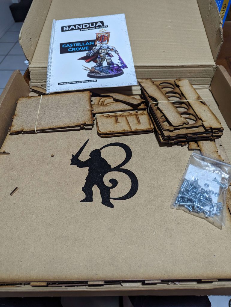I love assembling MDF terrain; it’s the simple joy of covering my work surfaces and hands in wood glue whilst building something cool that I really enjoy. Among the several storage tubs I own, I have two giant storage tubs filled just with MDF terrain alone; these tubs include my two favourite pieces, the Bandua Prepainted Q-Building Packs which see frequent use on my gaming table as excellent LOS blockers big enough for Imperial Knights to seek cover behind. So when the call went out to the Goonhammer Office asking who wants to assemble a box of MDF pieces into a MDF box, I immediately burst out of my blanket fort with my bottle of wood glue and painters tape at the ready.