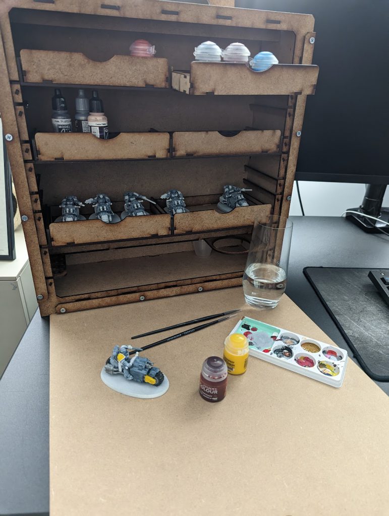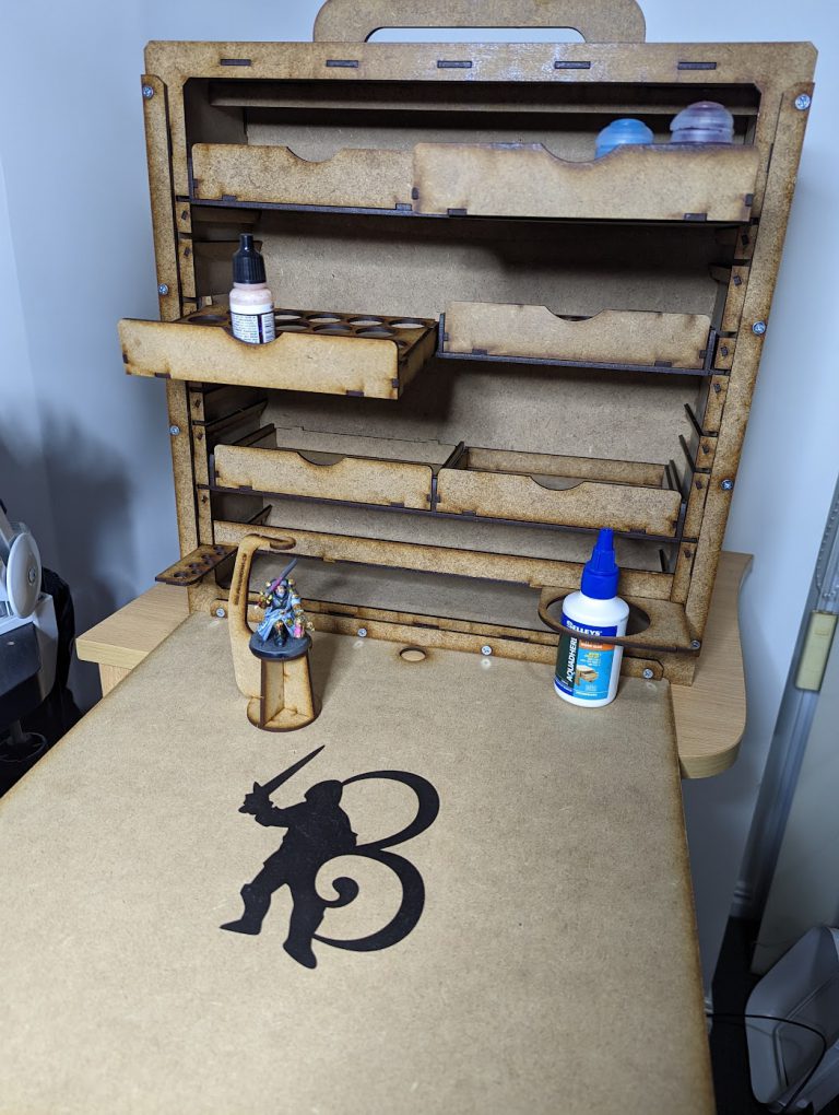 Inside the box with the little nuts and bolts is a QR code that links to the pdf instructions located on Bandua Wargames website. I’m not going to sugarcoat things however, the instructions aren’t great and I did run into a few stuff ups that could have been avoided had I been paying more attention. Luckily I wasn’t using the fast acting wood glue and was able to un-Beanith things with only a little bit of swearing. Case in point, my biggest bugbear with the instructions was the cup/brush holder tray.
