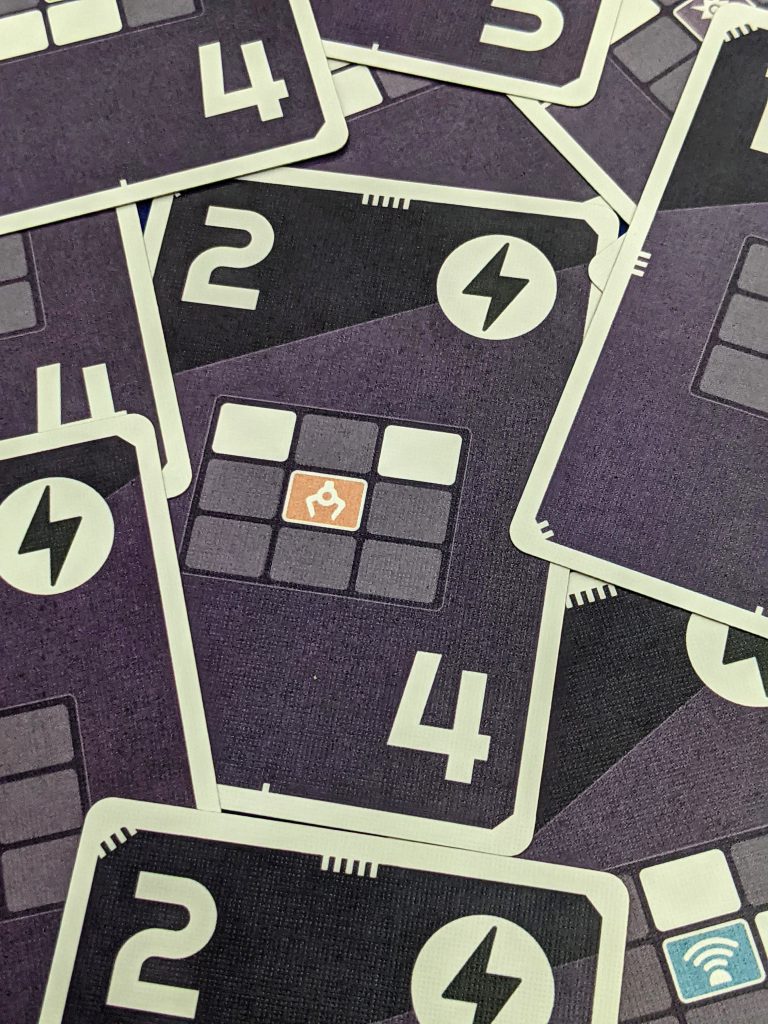18-card games is Button Shy's ethos, and their games generally play bigger than their 18-card footprint. Rove is no exception, but it may be one of the most elegant designs in Button Shy's collection. The iconography is clear and uncluttered. Module cards have the Nostromo's interior decorator touch, and colors and symbols on each are unique (meaning ROVE is a color blind-friendly design). Movement cards are equally smart and clean and even include pips along the edges so you can use them to track your movement each turn.