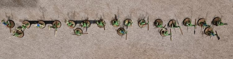 This is the most efficient way to place 32mm troops with 1" reach, if you are planning on fighting with them.If they have 2" range they can fight in two ranks, so who cares; if they are being used to screen and control space, then you're back to some version of the dumbbell. This formation comes into its own for 32mm combat units like Ardboyz, Namarti and Bloodreavers.