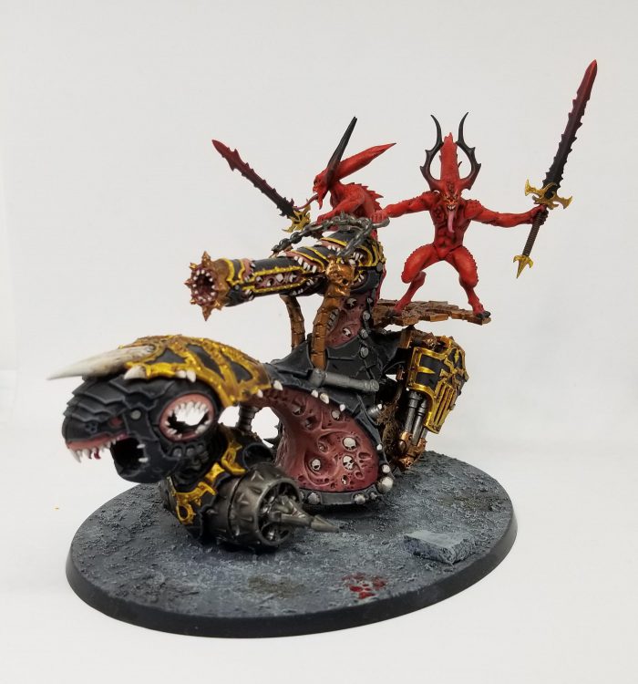 Either way, this is a pretty insanely bad use of 80 points - you're much better off just taking single-model units of Chaos Spawn which, for 25 points, do much more for you and can punish an opponent for not killing them. As good as +1 to charges is, it's not worth 240 points to start the game on 3 BTP.