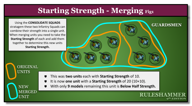 This is a newly defined concept for 9th but essentially it’s a state that units can now find themselves in. It does have a few quirks though rather than the simple below or above half the unit, that seems obvious when units start to split or merge as they can infrequently do.