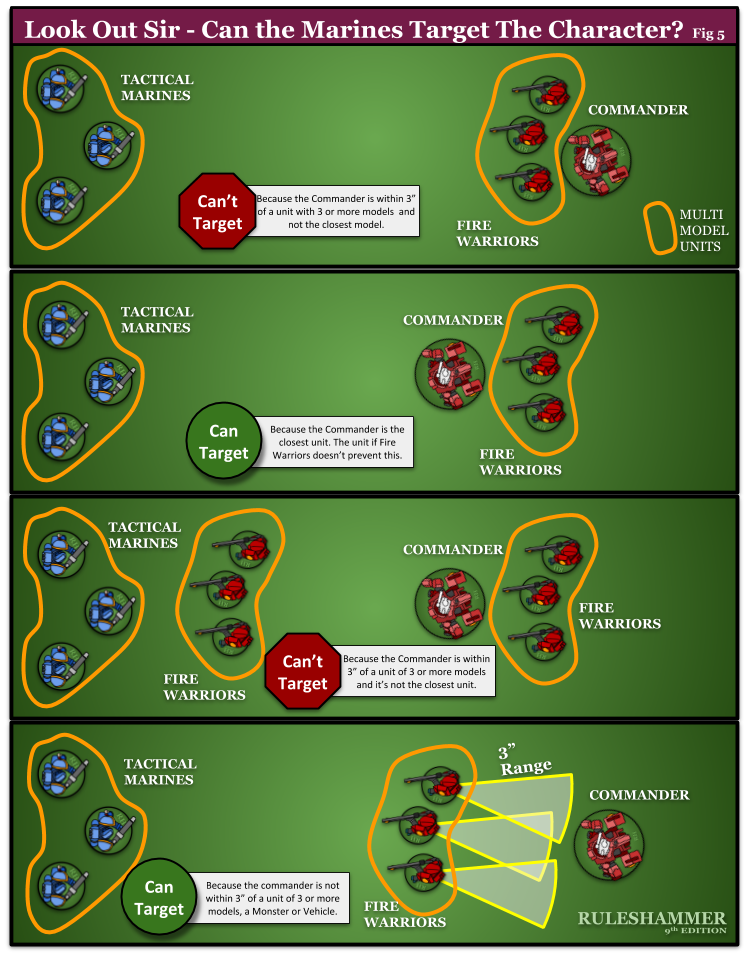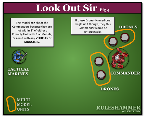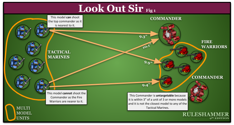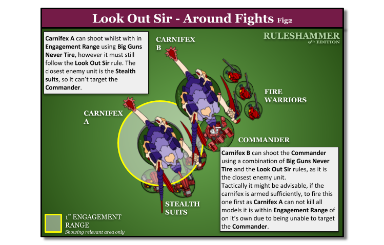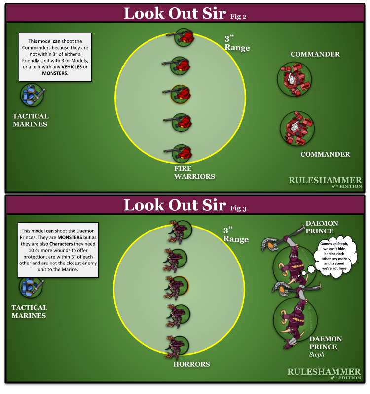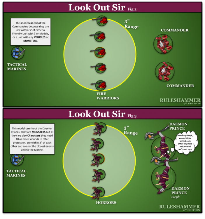 Whilst we're discussing it lets also look at how Look Out Sir works when Characters are within Engagement Range and the unit can still shoot.
