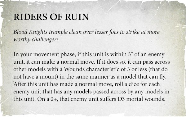 - Redeploy - Brand new to 3.0 and probably one of the most interesting changes in the game. Used in your opponent's movement phase, if they end a movement within 9" of one of your units and more than 3" from an enemy units you can choose to immediately activate that unit and move D6", but it must end its move more than 3" from the enemy as usual.