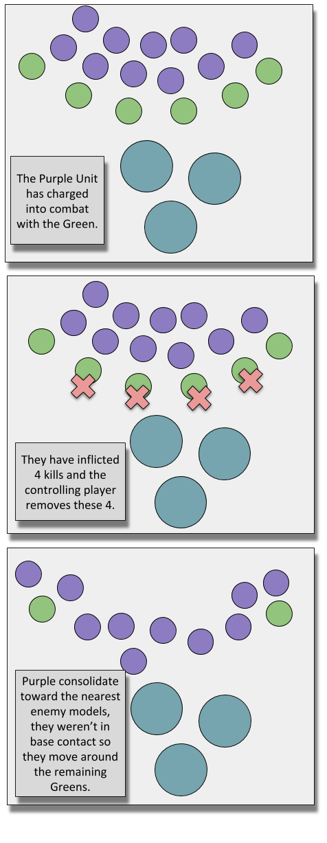 Models move and fight in units, made up of one or more models. A unit must be set up and finish any sort of move as a group, with every model within 2" horizontally, and 6" vertically, of at least one other model from their unit: this is called unit coherency. If anything causes a unit to become split up during a battle, it must re-establish its unit coherency the next time it moves.
