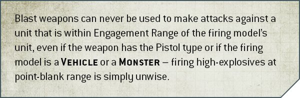 The other bit not included here though is that the new Blast weapon rule for 9th Edition prevents these weapons from being used on Enemy units within Engagement Range.