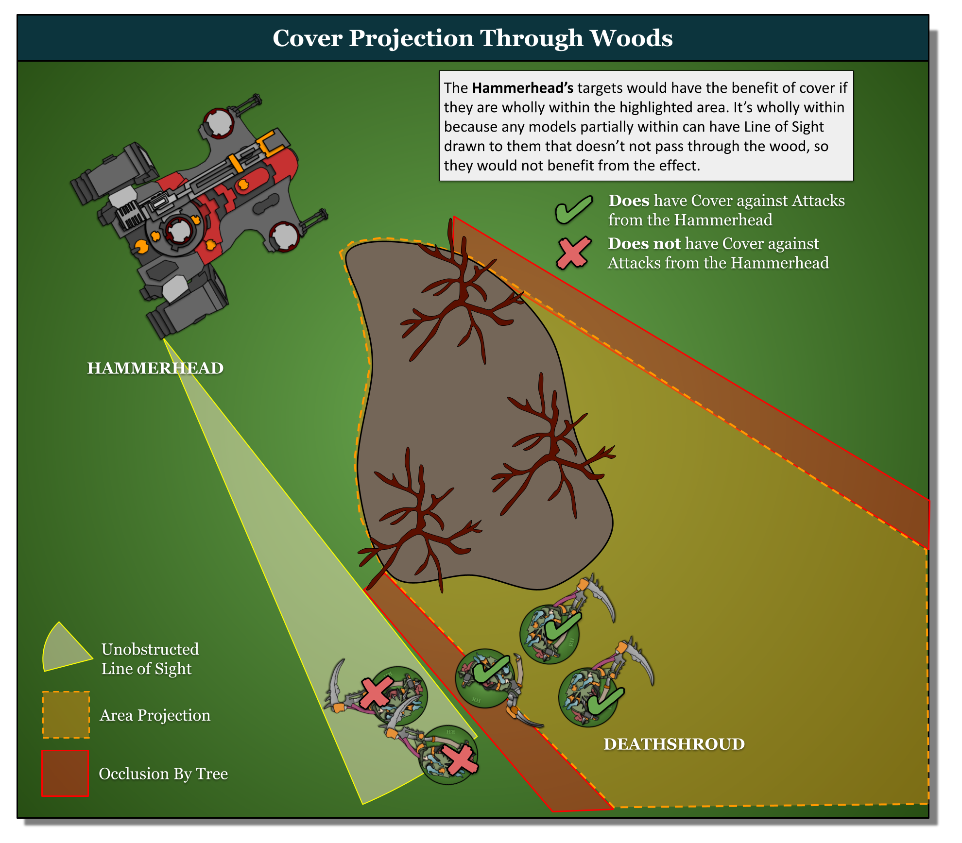 Cover in Woods is by comparison relatively simple once Visibility is understood.Each time a ranged attack is allocated to a model, if that model is either wholly within this terrain feature, or it is not fully visible to every model in the attacking unit because of this terrain feature, that model has the Benefit of Cover against that attack.