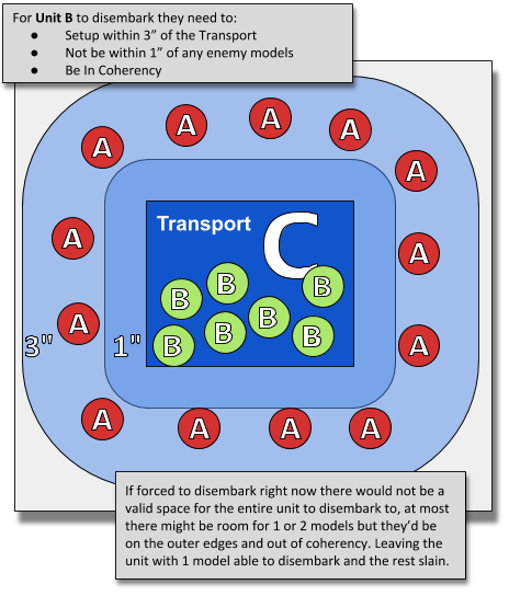 It’s still possible to block disembarking with models surrounding a transport though, it’s just not as simple as it appears on the surface.