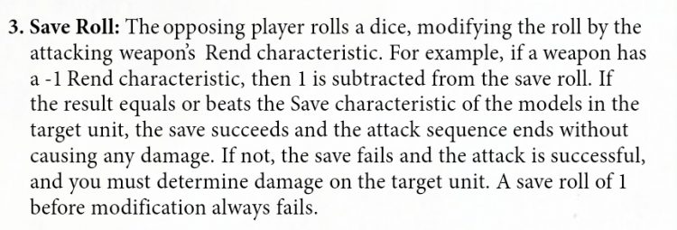 First up is how rend actually works. I know a lot of people (myself included) would default to the mental shorthand of seeing a save value, adding your rend to it, and cracking on from there. So a 3+ save being hit by rend -1 weapons now saves on 4+; a 4+ save being hit by rend -2 now saves on a 6+; and so on.