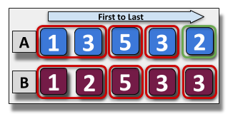 In Scenario B: The same numbers but in a different order manage to kill 4 whole aggressors.