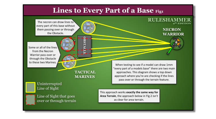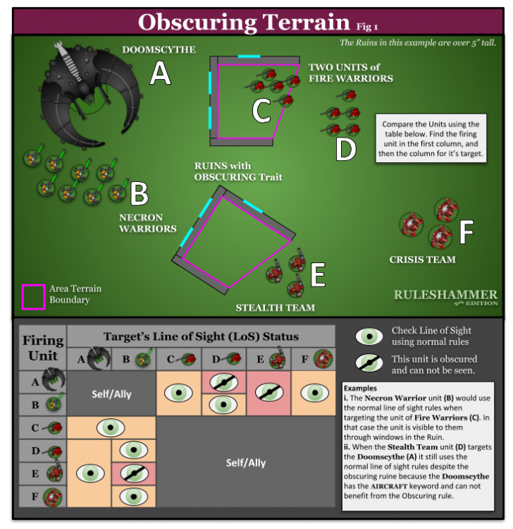 Obscuring is the most common interactive trait players will come across. I think the easiest route to explaining it is to look at some practical examples of how obscuring works on a battlefield.
