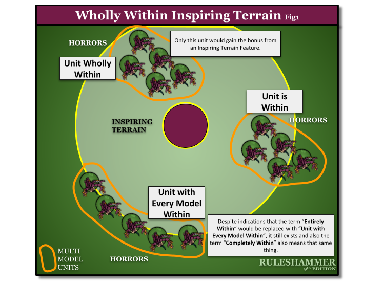 Perhaps not something that you'll see on every board, but it does allow for some Fortifications with the Building Terrain type to gain rules like this via traits rather than case by case. The wording of this rule also requires the unit to be wholly within, not just that one model from the unit be within.