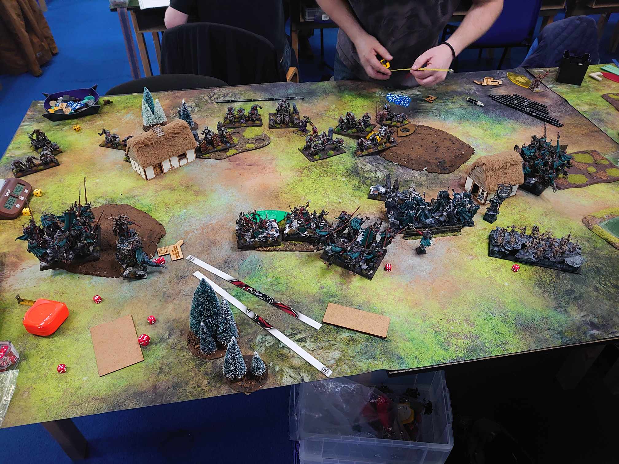 At this point, I broke my photo streak, because boy this was close. Paul’s retaliation took out the Human Tribesmen, but he managed to double 1 the Night Raiders, keeping them in the fight. I went for as many kills as I could - Ogre Warlock with Mounted Sons of Korgaan, Lord into the Shooters, Night Raiders scrabbling to Waver the Sergeant on Chariot. All bar the latter succeeded, and I was readying myself for a slog to close out the game, but Turn 7 decided not to show up for once - I’d won. Back in the game, baybee.