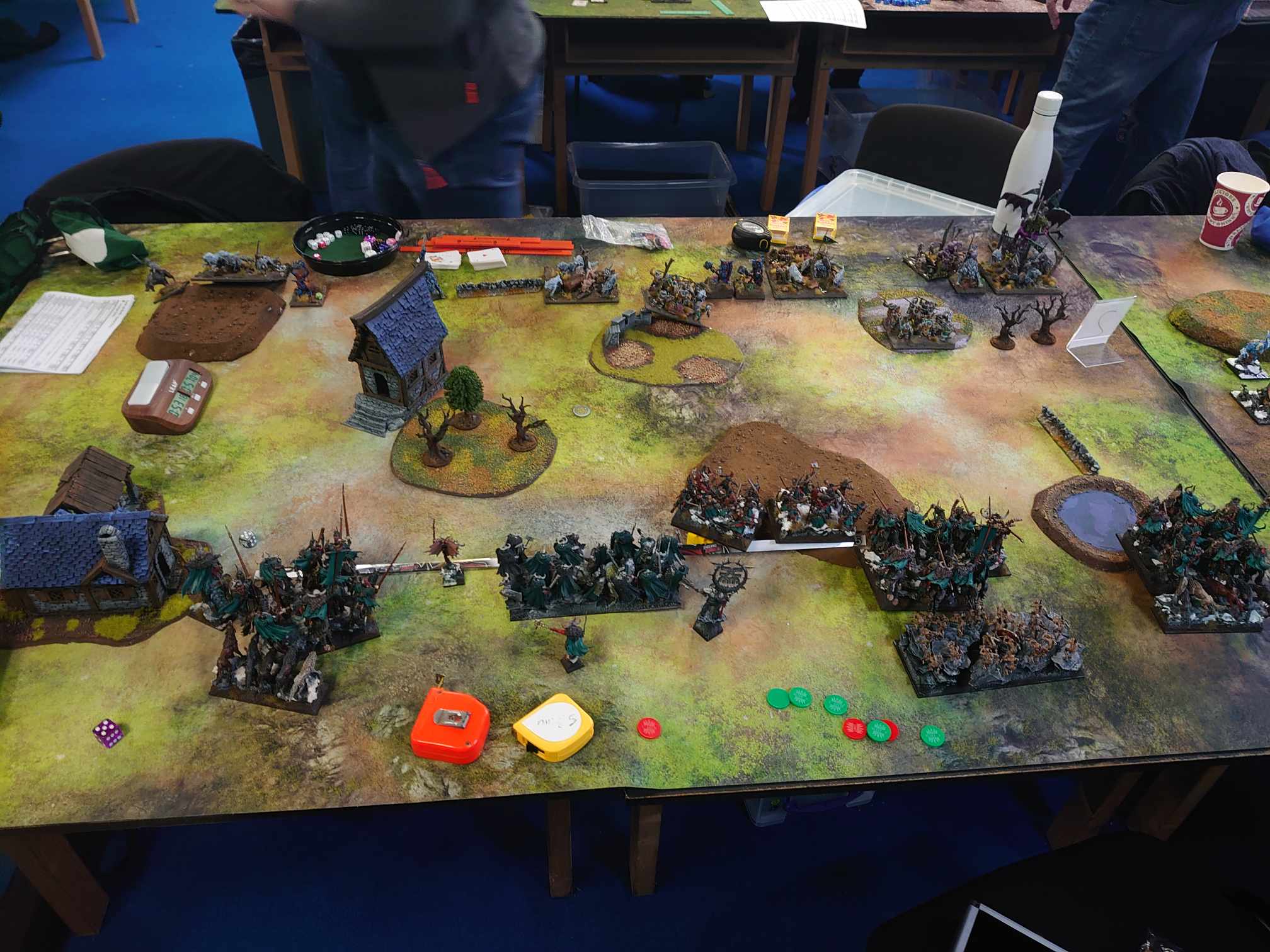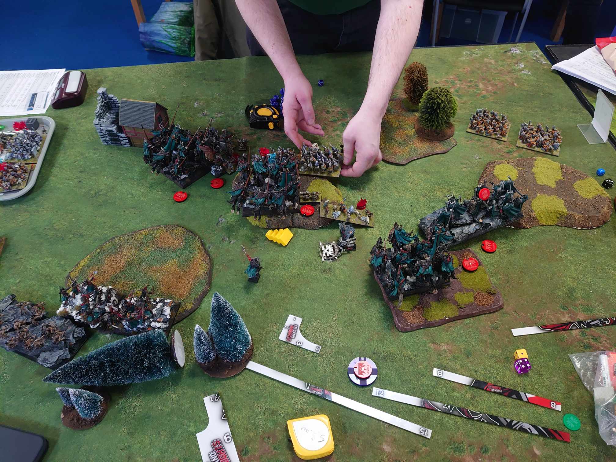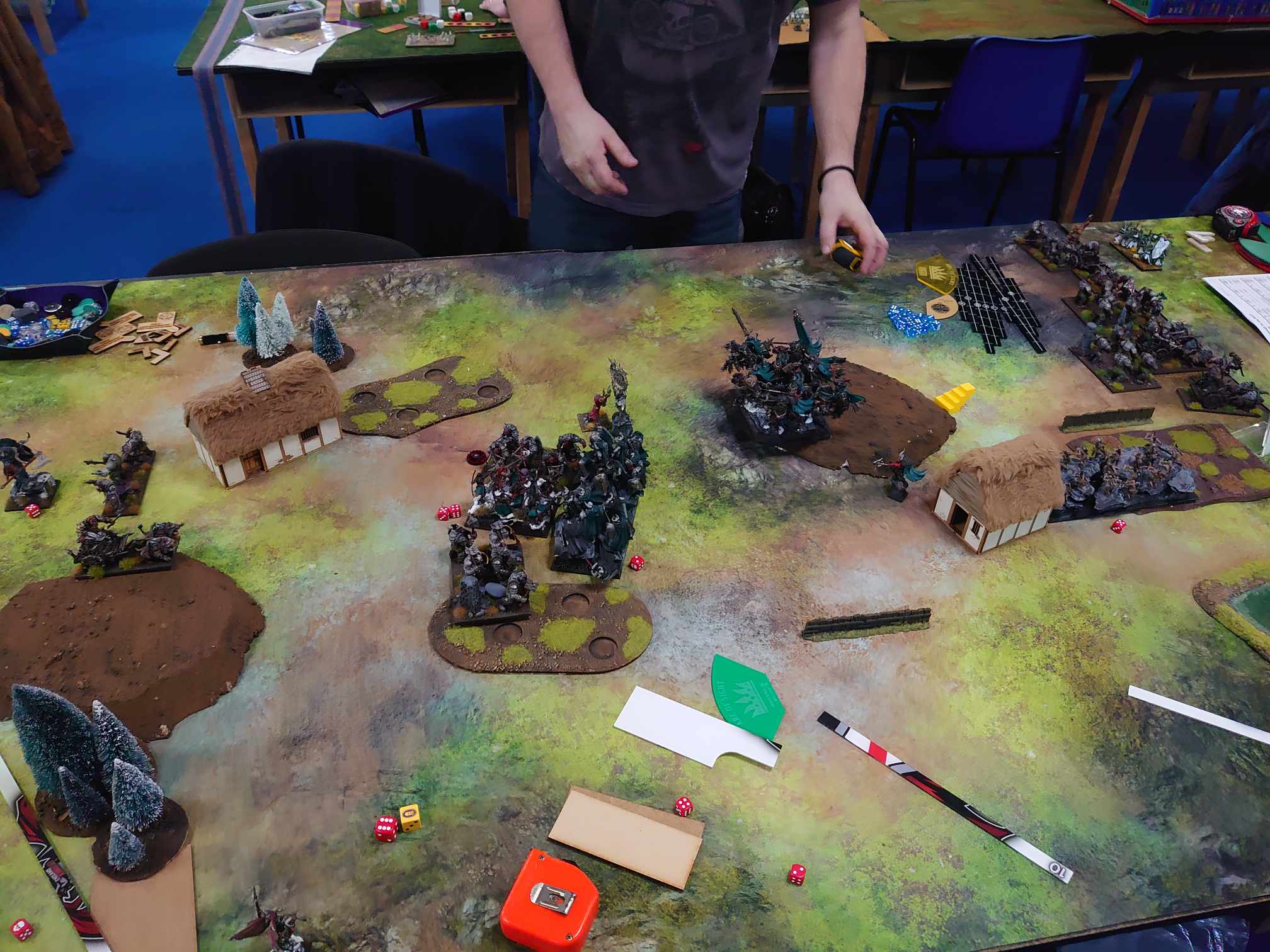 The game continued in this vein the whole time. We pretended to play some Kings of War in the centre with a chaff fight, but really the only determinant of the game would be whether one of us would lose our right flank (where all my shooting was). Spoiler alert, we didn’t. This meant that despite the game itself trying its best to bring us a victor, going all the way to Turn 7, it was inevitable that we would end with a very frustrating draw. Honestly, this was an annoying as hell result - I needed the big numbers to get the high placing, and I felt like I’d been robbed by a very silly terrain layout. There was nothing to be done for it, though, other than hoping to avoid a repeat pairing in the final round (a distinct possibility, due to our close scores).