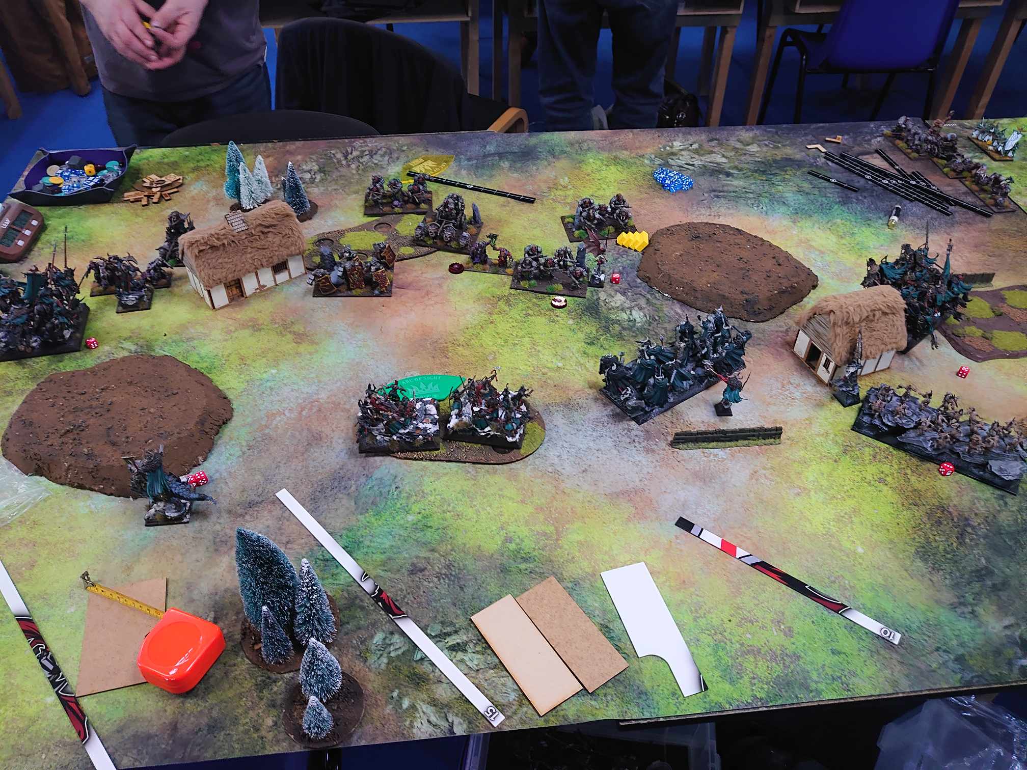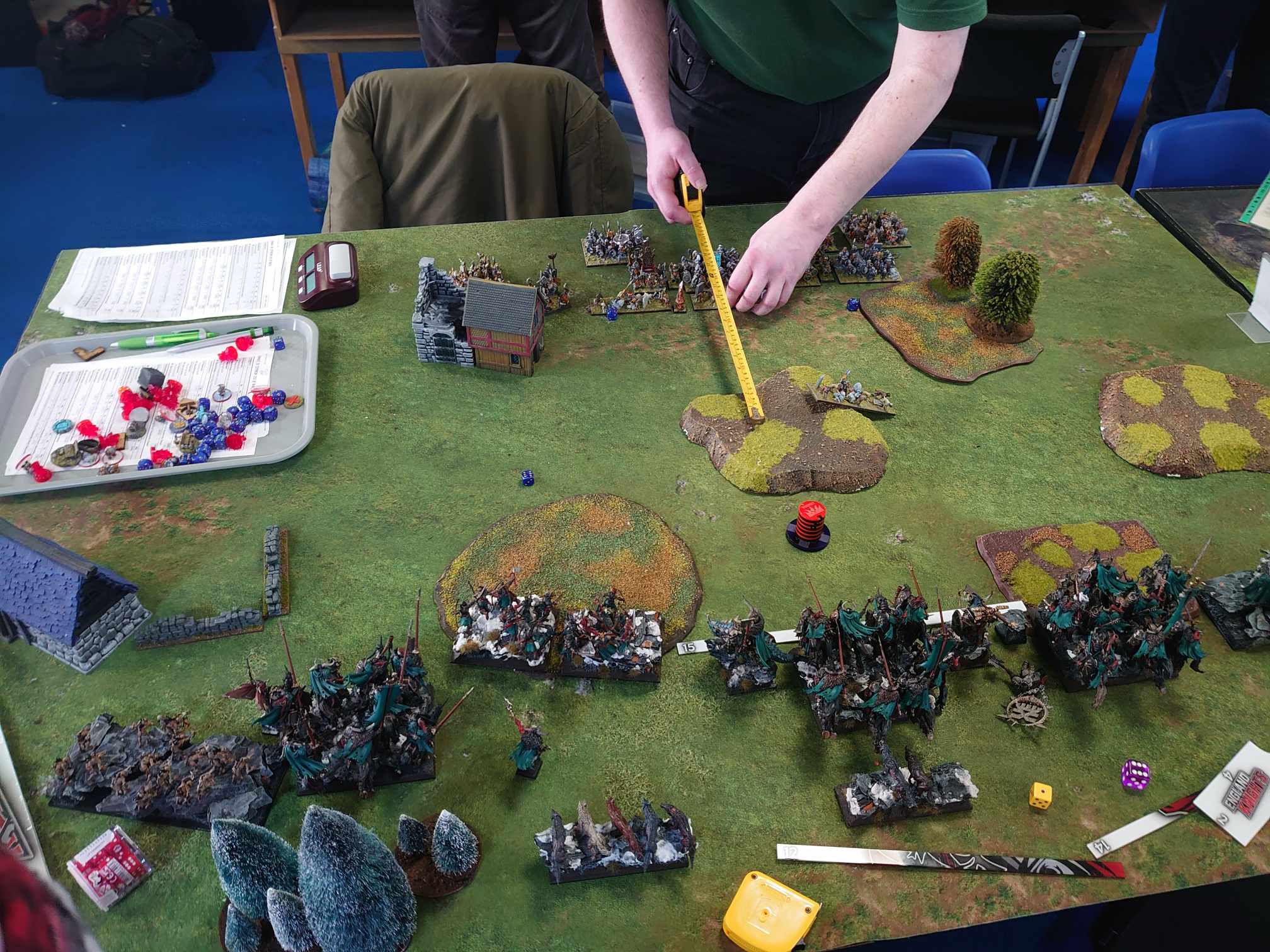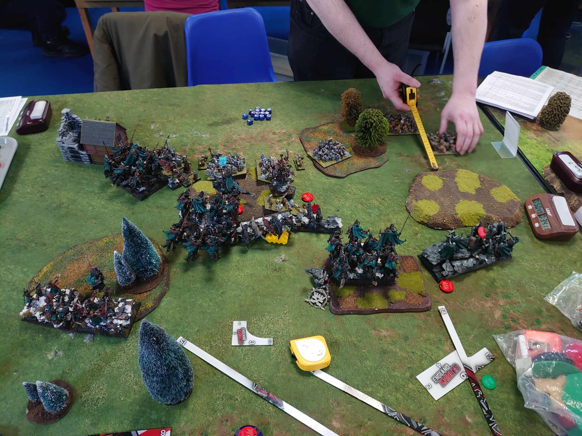 The game continued in this vein the whole time. We pretended to play some Kings of War in the centre with a chaff fight, but really the only determinant of the game would be whether one of us would lose our right flank (where all my shooting was). Spoiler alert, we didn’t. This meant that despite the game itself trying its best to bring us a victor, going all the way to Turn 7, it was inevitable that we would end with a very frustrating draw. Honestly, this was an annoying as hell result - I needed the big numbers to get the high placing, and I felt like I’d been robbed by a very silly terrain layout. There was nothing to be done for it, though, other than hoping to avoid a repeat pairing in the final round (a distinct possibility, due to our close scores).