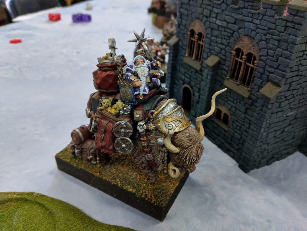 - Local community stalwart Stephen Tuck, who printed off an excellent diorama fight scene between Krampus and Santa, which I elected to award to the best looking army on display that day.
