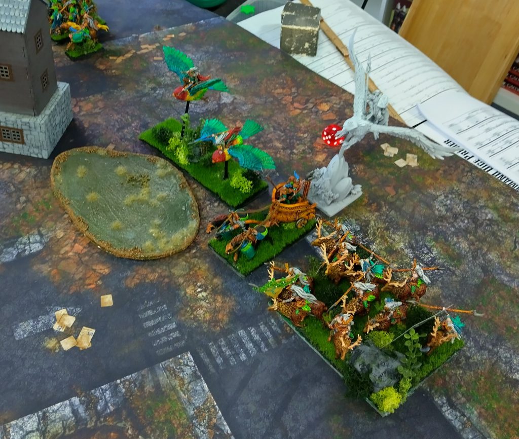 The truth about getting new players to the scene is that the scene needs to be… well, seen! This means regular gaming days in stores, or failing that, at least regular events to attend. This event attracted a brand new player and a player that hadn’t been around since 2nd edition Kings of War.The new player had a whole Kings of War army prepared just for this event - an incredible selection of 3D printed Elves on vibrant green basing [5], with Drakons represented by the very colourful Australian lorikeet - albeit Drakon-sized! In addition, every single model was magnetized to the multibase. A Spearmen unit could become Seaguard or Gladestalkers just by swapping out the required models. It was truly a surprise to see! The judge of the “Best Painted Army” was my wife, who was helping out the whole day [6], and she just loved the lorikeets and colour palette of the new player’s army so much that for her it was a clear winner. The new player might not have won all his games, but by all accounts they thoroughly enjoyed the event.