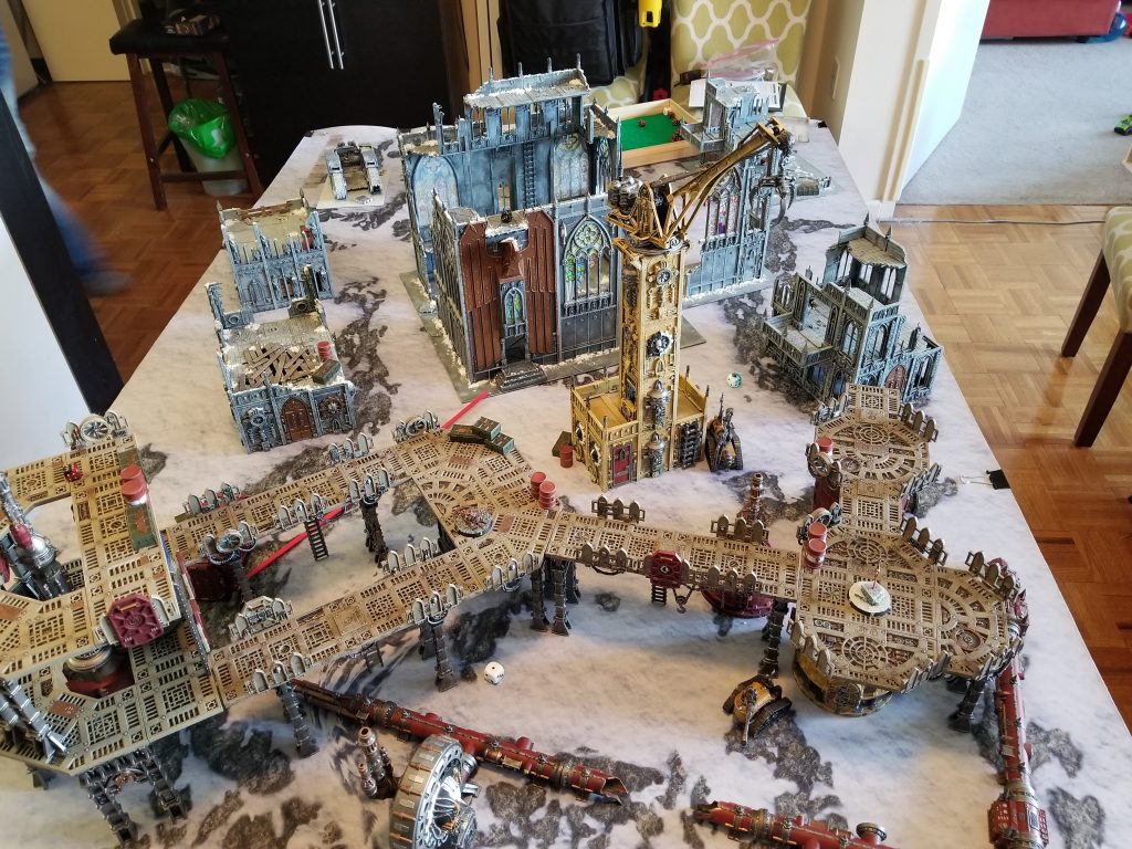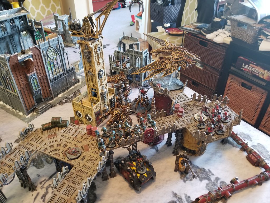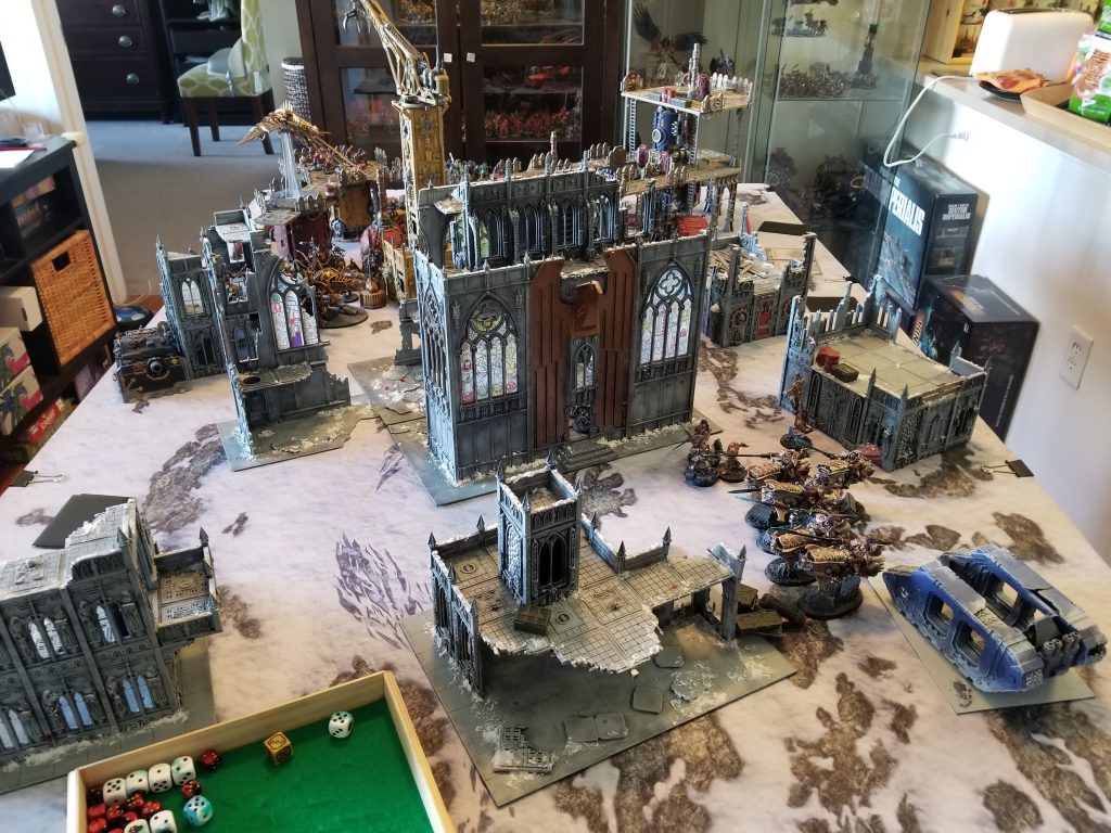I was a big fan of the Schemes of War when they showed up in White Dwarf last year, and was happy to see them return with more missions in Chapter Approved 2019. We both had cards from the faction decks, so we figured we'd create a couple of decks and play one of the new Schemes missions. Randomly selecting, we ended up with Territorial Control. In Territorial Control, the player holding more objectives gets to draw an extra card every turn. Otherwise it's normal Schemes/Maelstrom.
